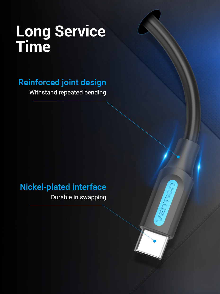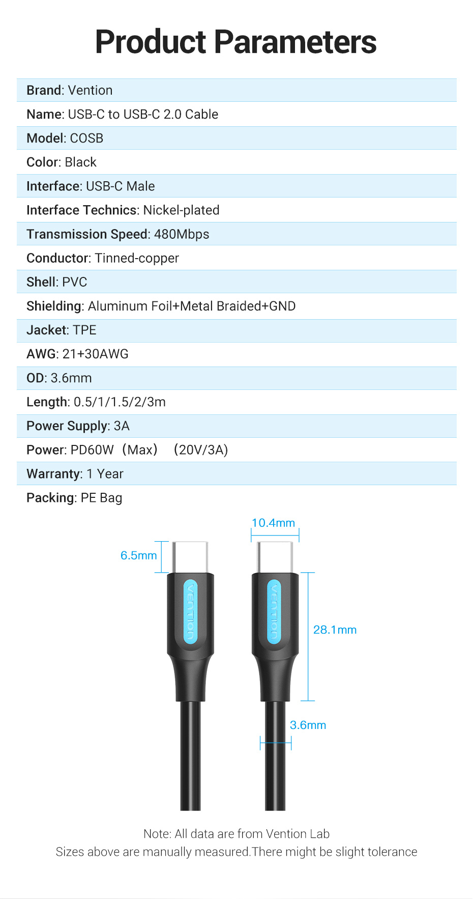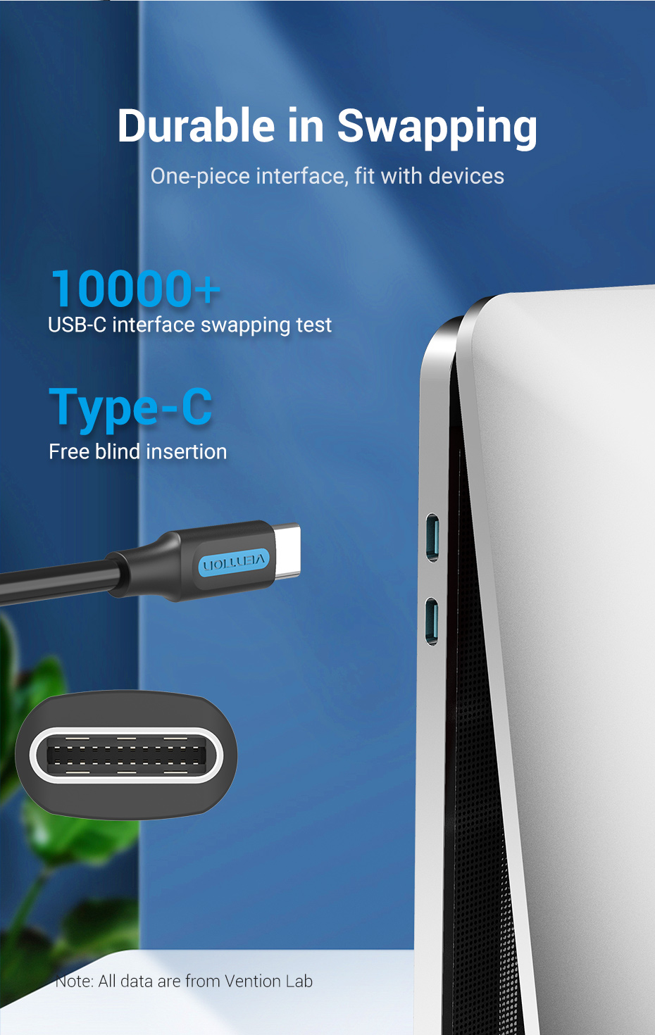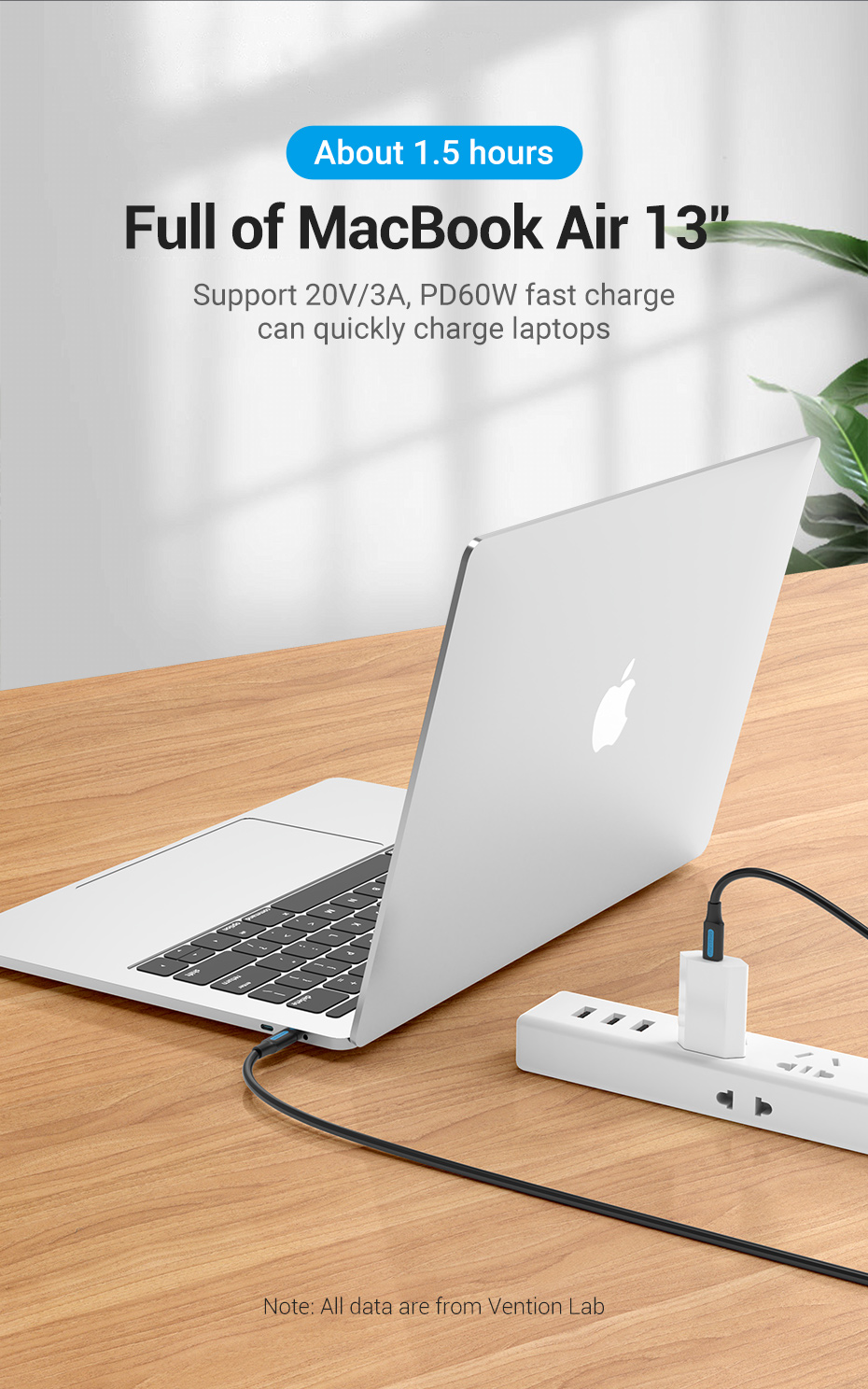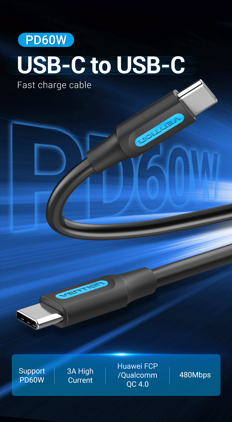 Dây cáp sạc nhanh Vention Type-C PD 60W 3A 480mbps tiện dụng thích hợp cho Huawei Matebook/ cellphone/ laptop