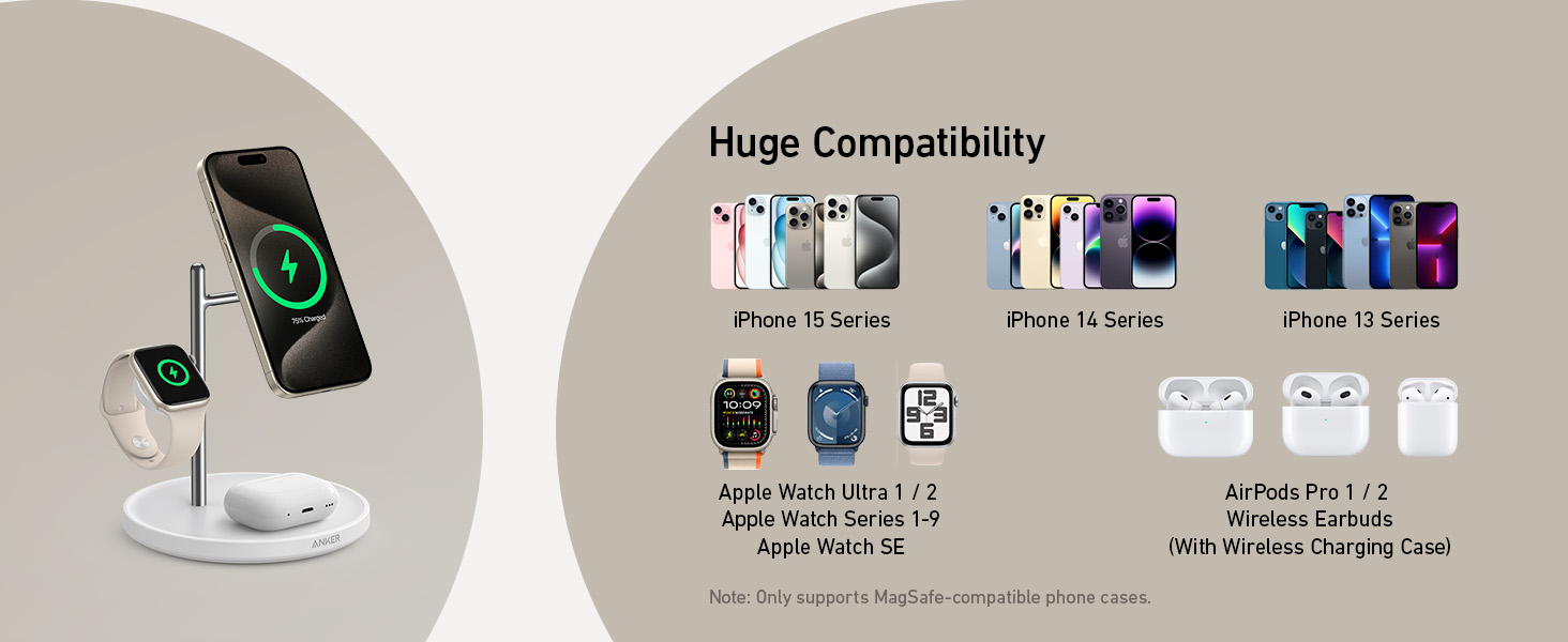 Đế sạc Anker MagGo 3-in-1 Wireless chuẩn Qi2 15W kèm bộ sạc – B25M3