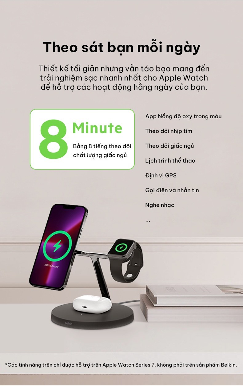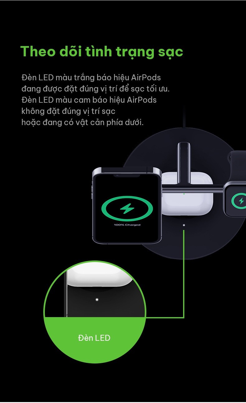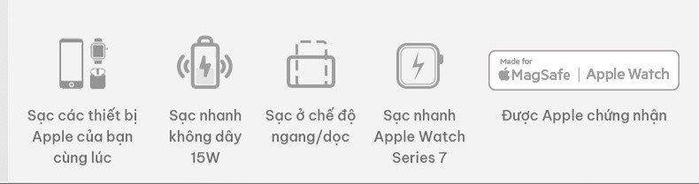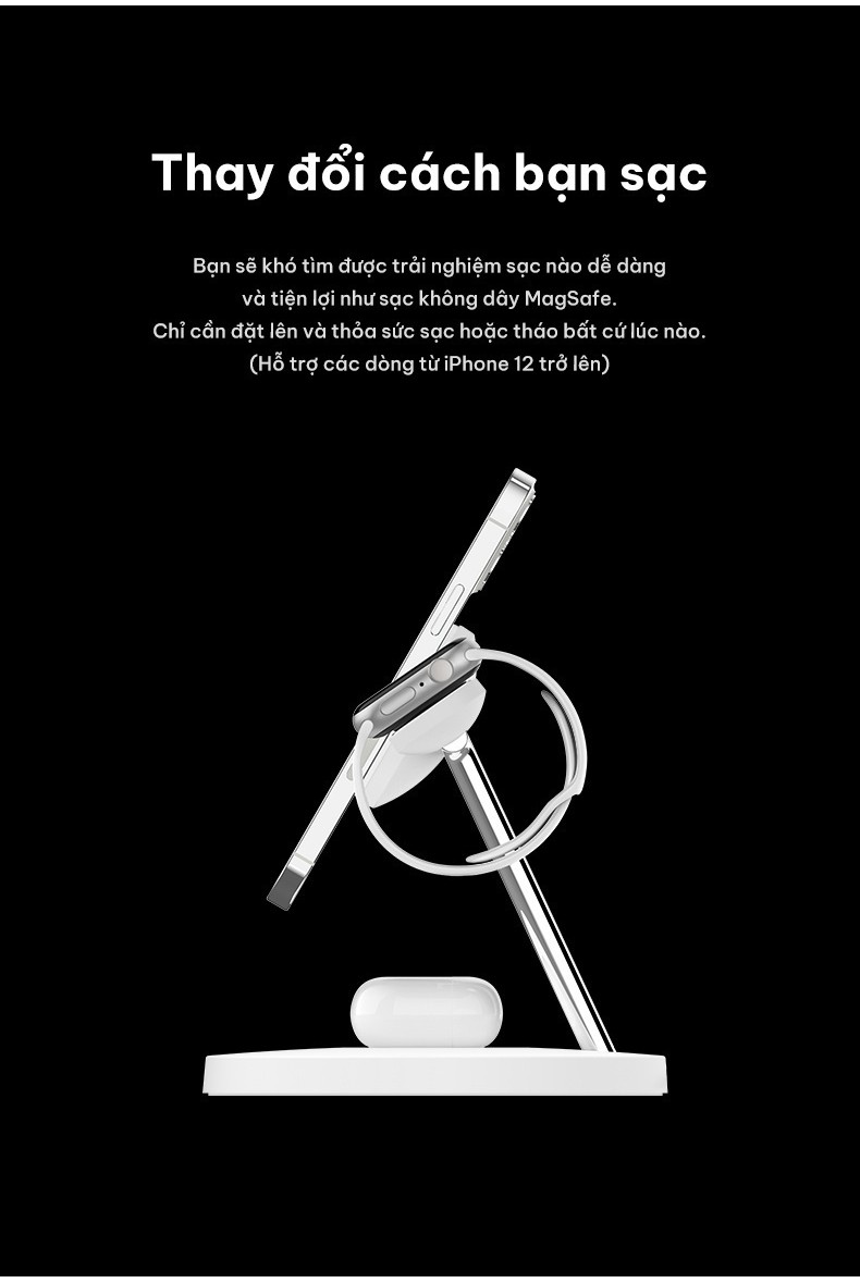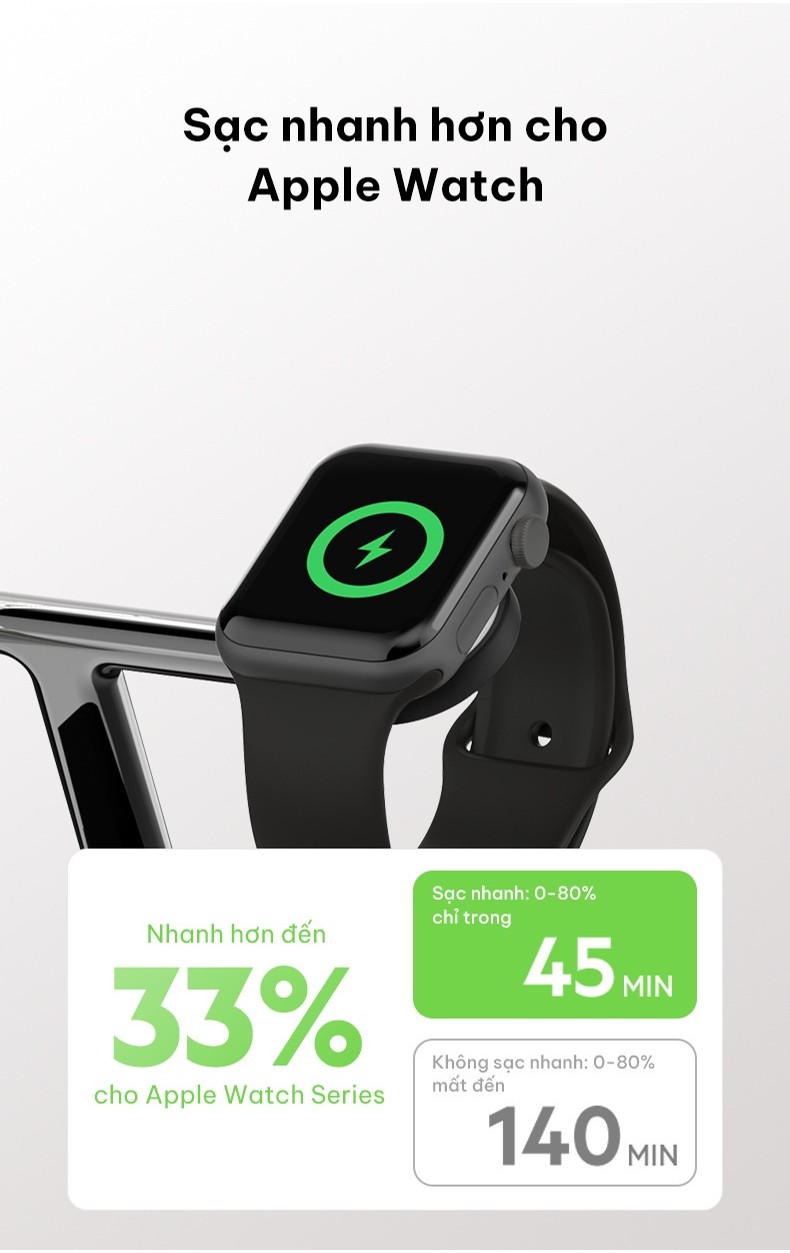 Sạc không dây nhanh cho dòng iPhone 15/14/13, Apple Watch và AirPods của bạn