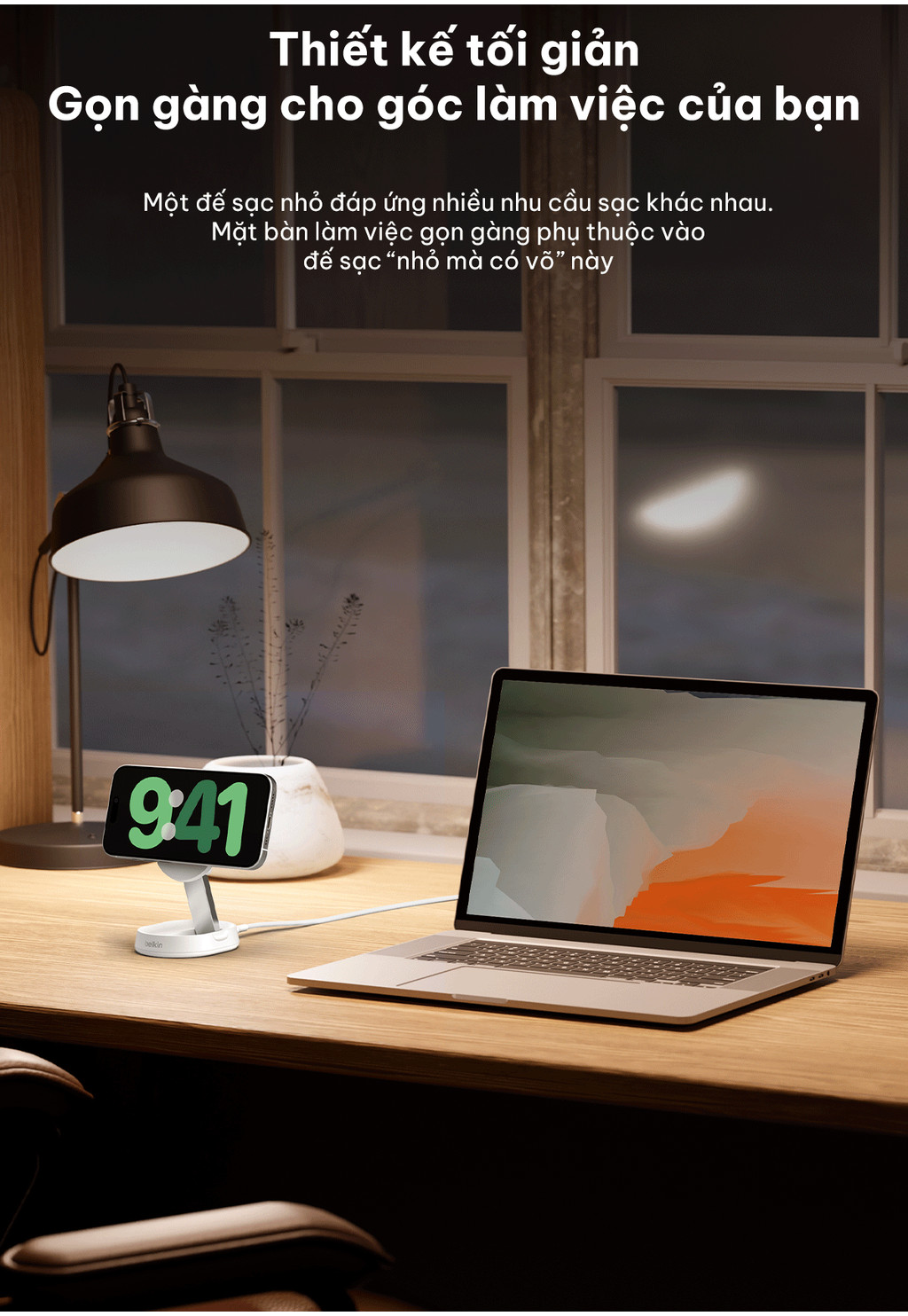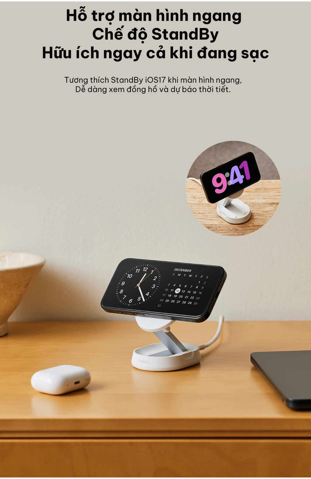 Người dùng Apple có thể tận dụng các tính năng mới nhất với đế sạc có thể dễ dàng gập lại để mang theo di động. Hỗ trợ Chế độ chờ cho phép bạn tùy chỉnh kiểu dáng iPhone theo ý thích.