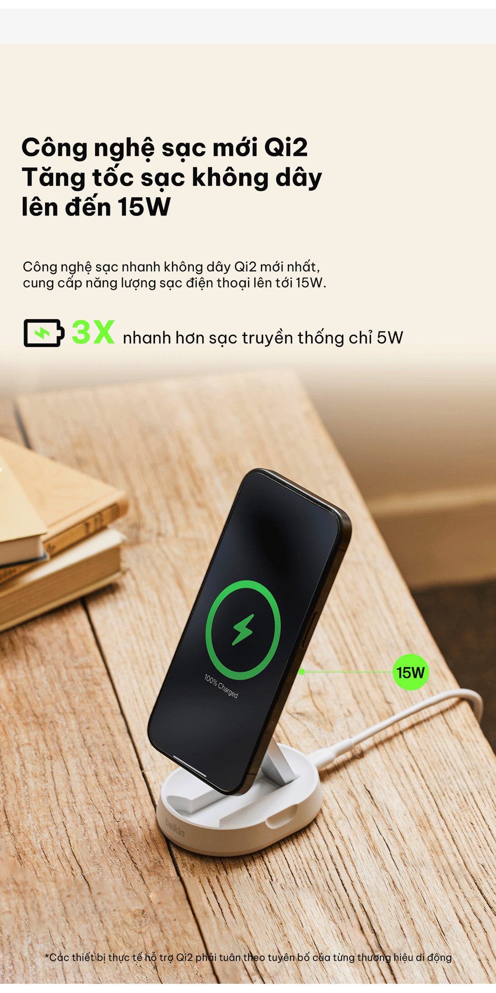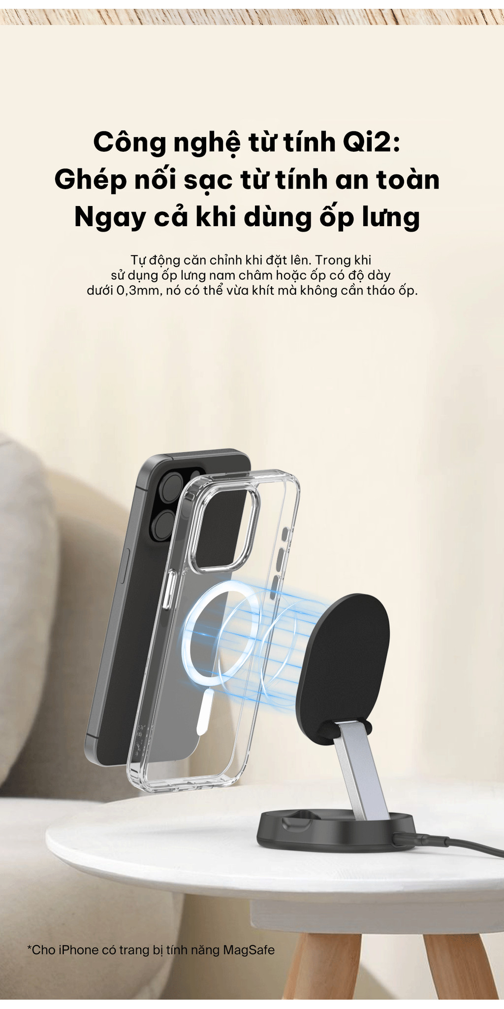 – Sạc điện thoại ngay cả khi đang đeo ốp lưng