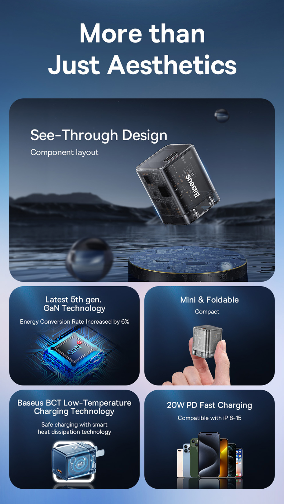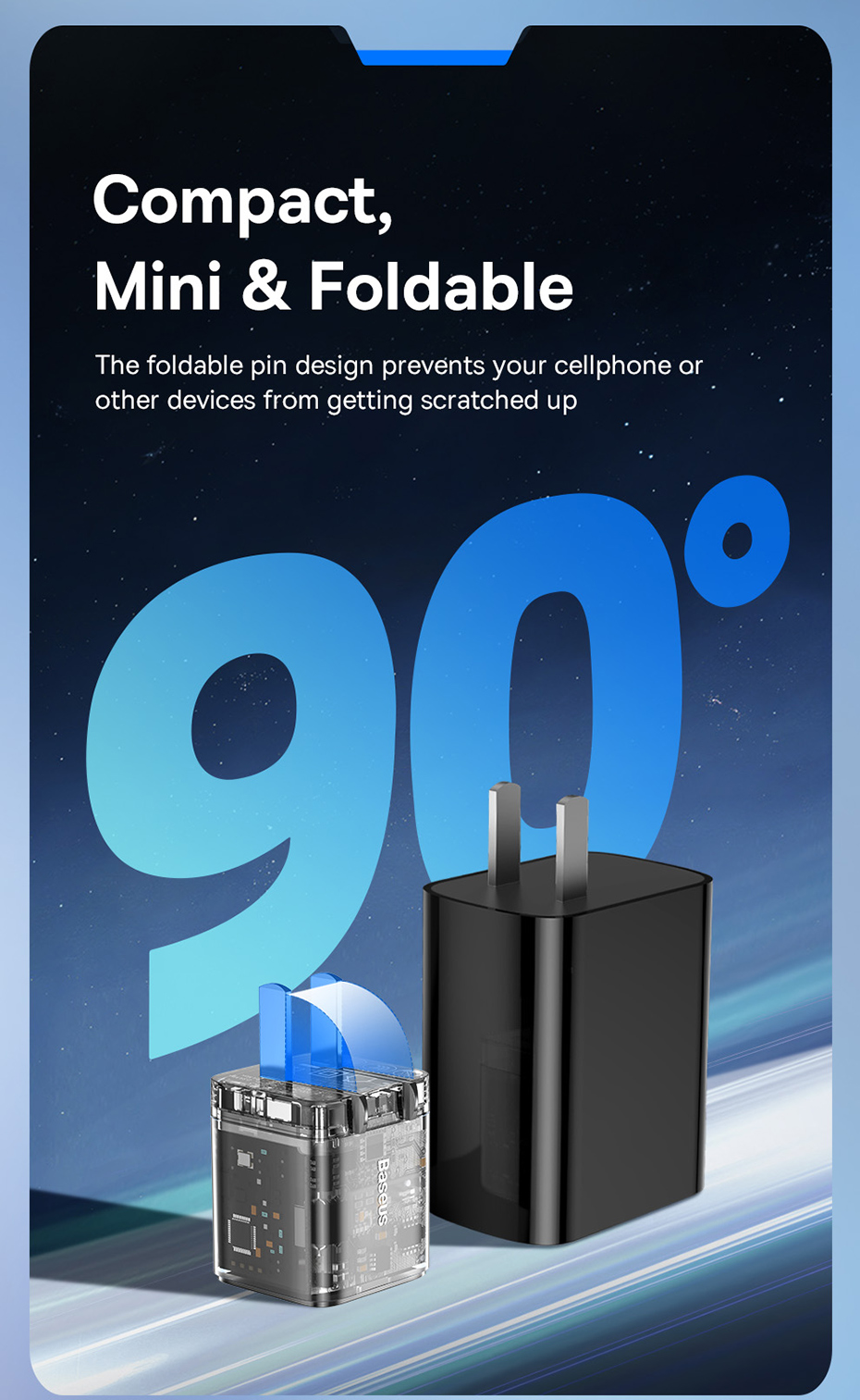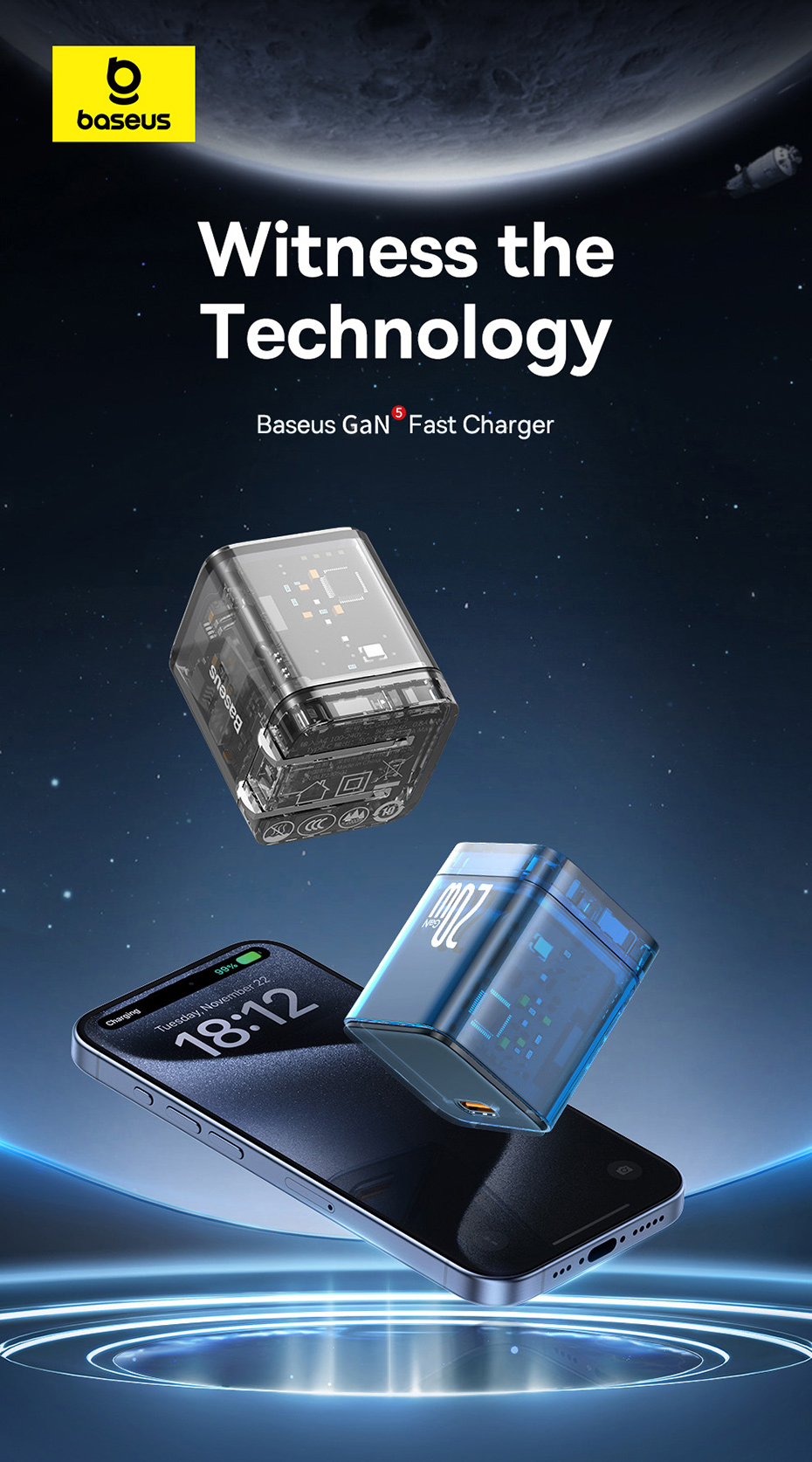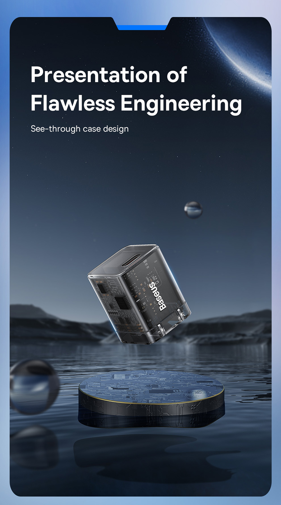 Đế sạc nhanh BASEUS GAN5 20W trong suốt kèm phụ kiện