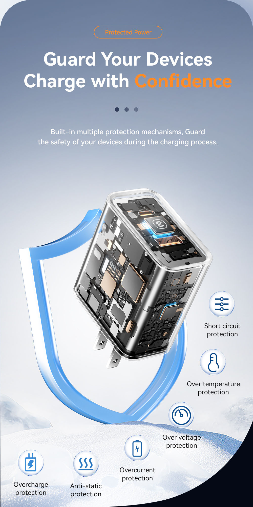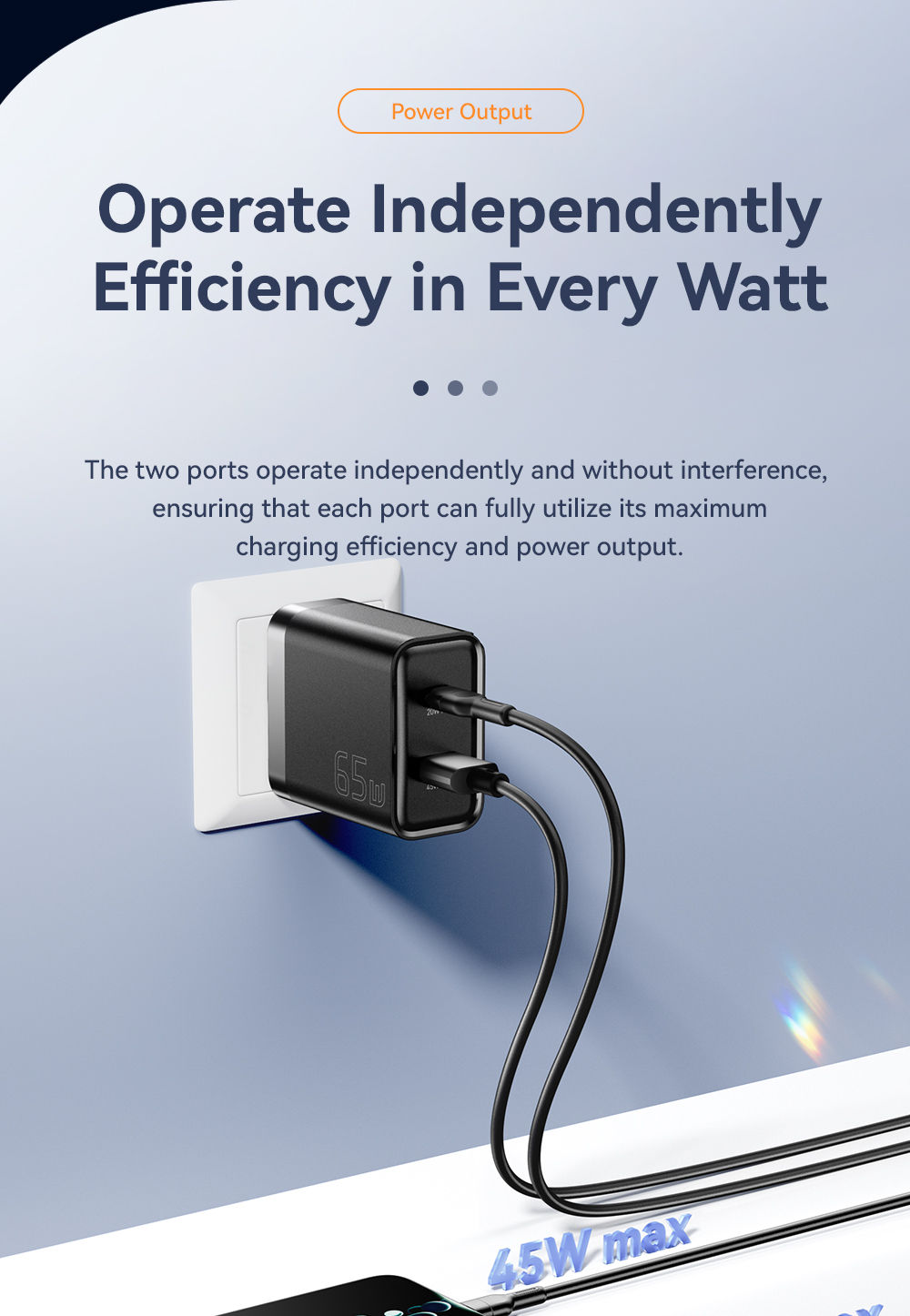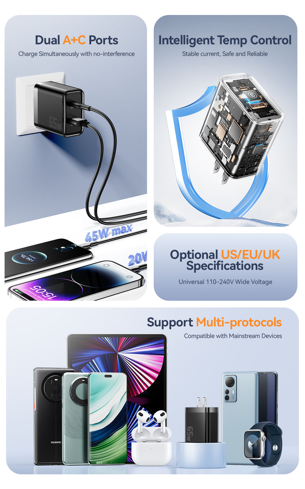 1:65W siêu lấp lánh sạc bộ sạc + C (Sạc nhanh nhiệt độ thấp thông minh, Chip nhận dạng thông minh, bảo vệ sạc, Tương thích đa thiết bị)