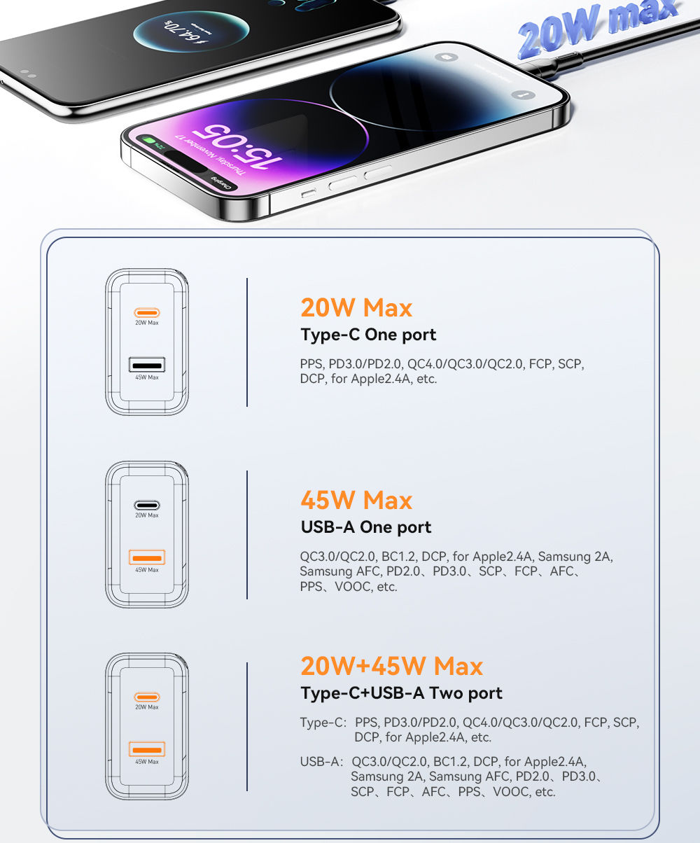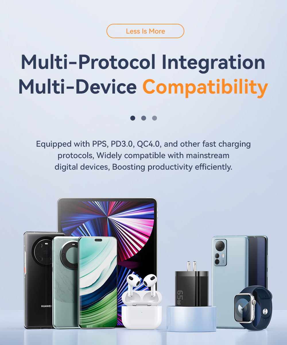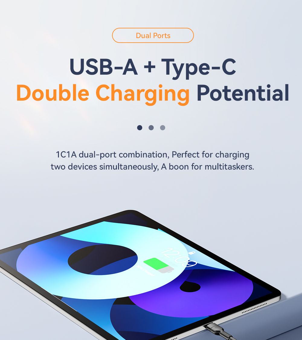 Kết hợp 2: 65w1c1a để đáp ứng việc sạc nhiều thiết bị đồng thời (máy tính bảng, điện thoại di động, tai nghe)