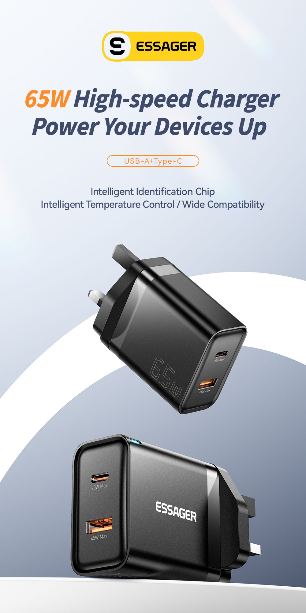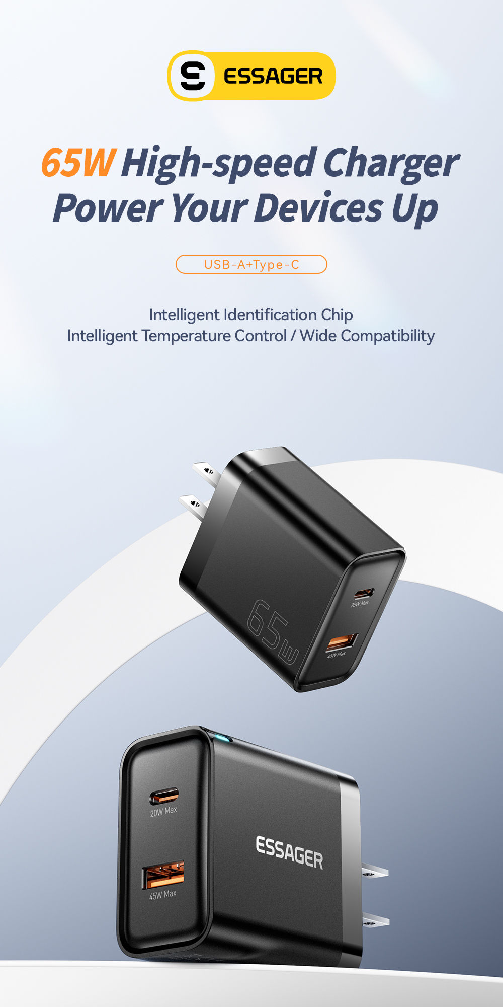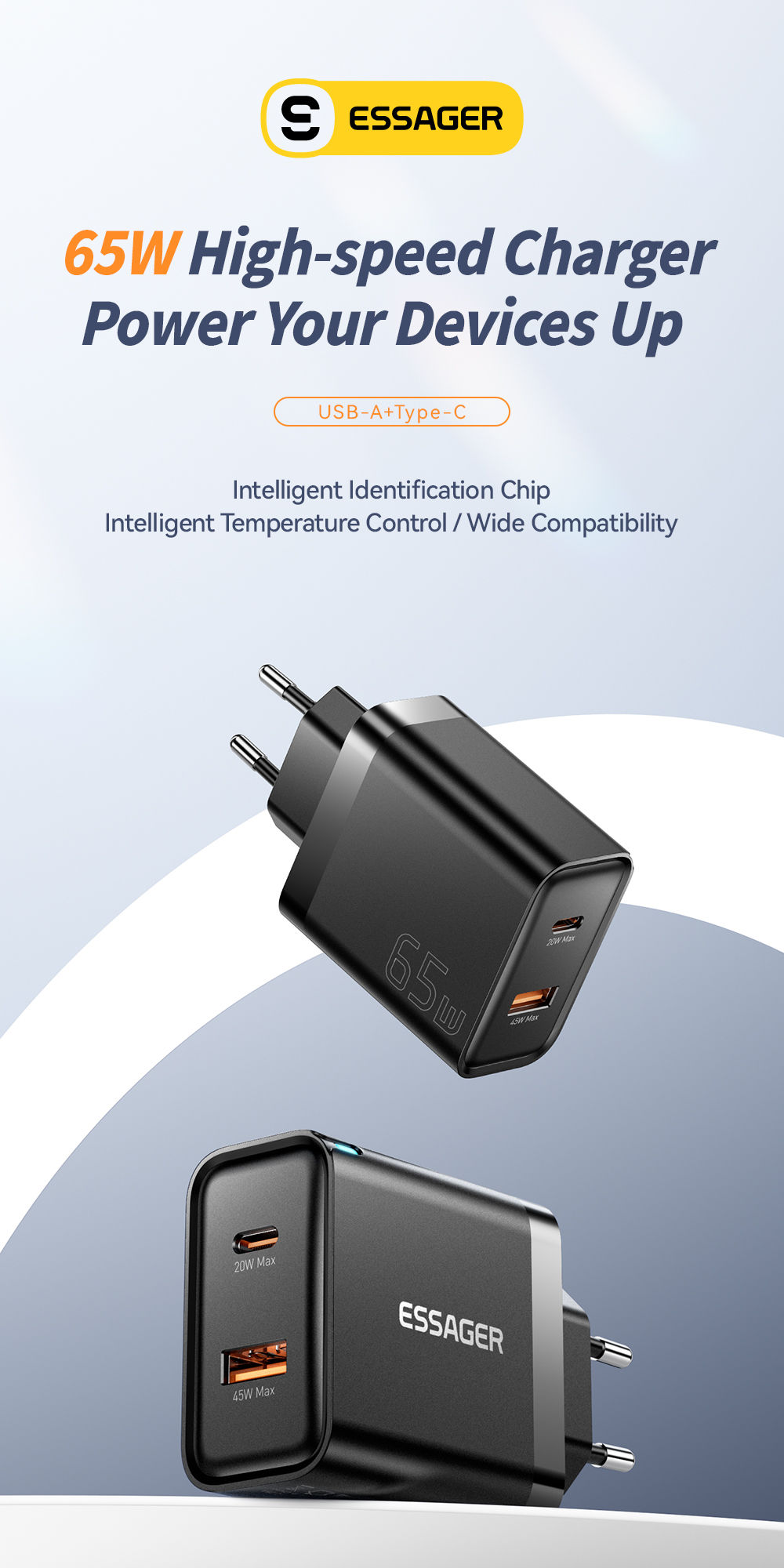 Essager 65W siêu lấp lánh phí gan A + C Bộ sạc USB A Loại C siêu sạc nhanh r cho máy tính xách tay máy tính bảng sạc nhanh qc4.0 3.0 pd3.0 cho iphone15 14-8 Series iPad macbook Huawei Samsung điện thoại siêu nhanh sạc nhanh bộ sạc