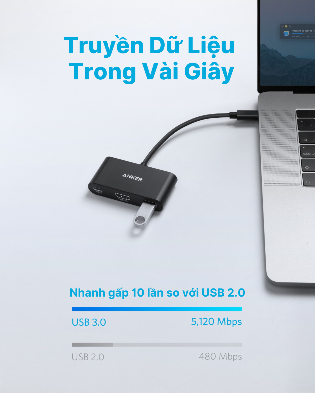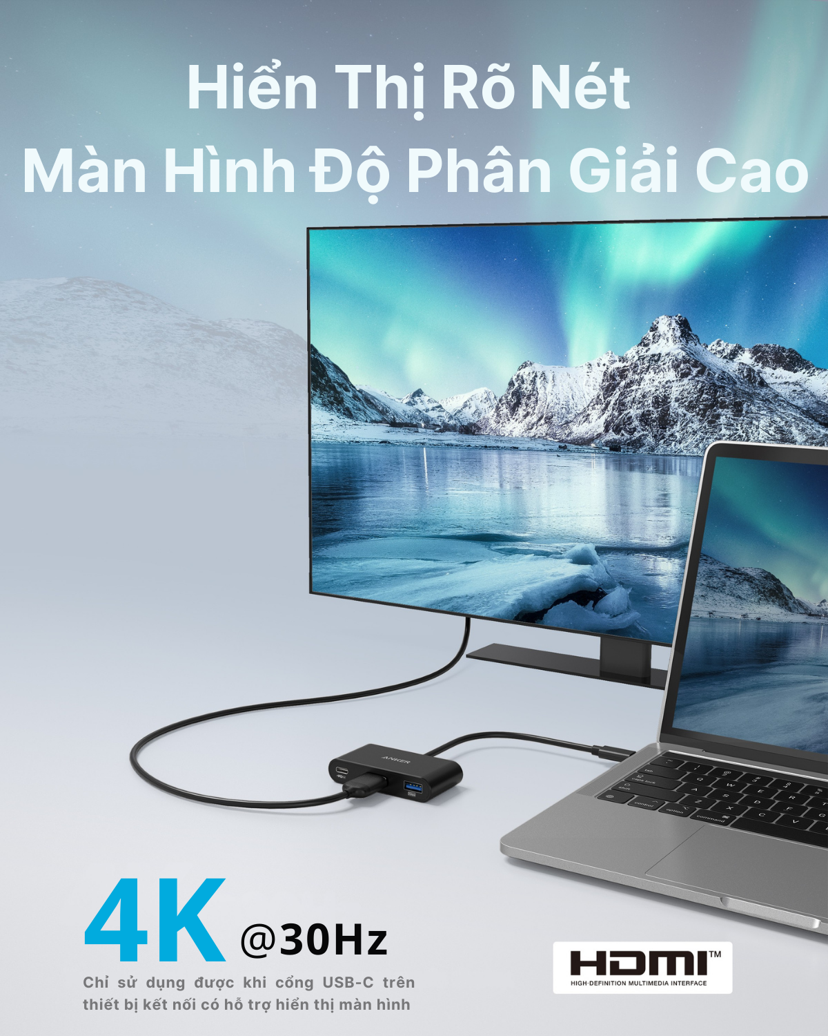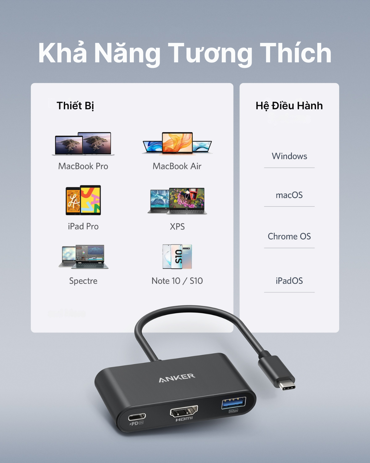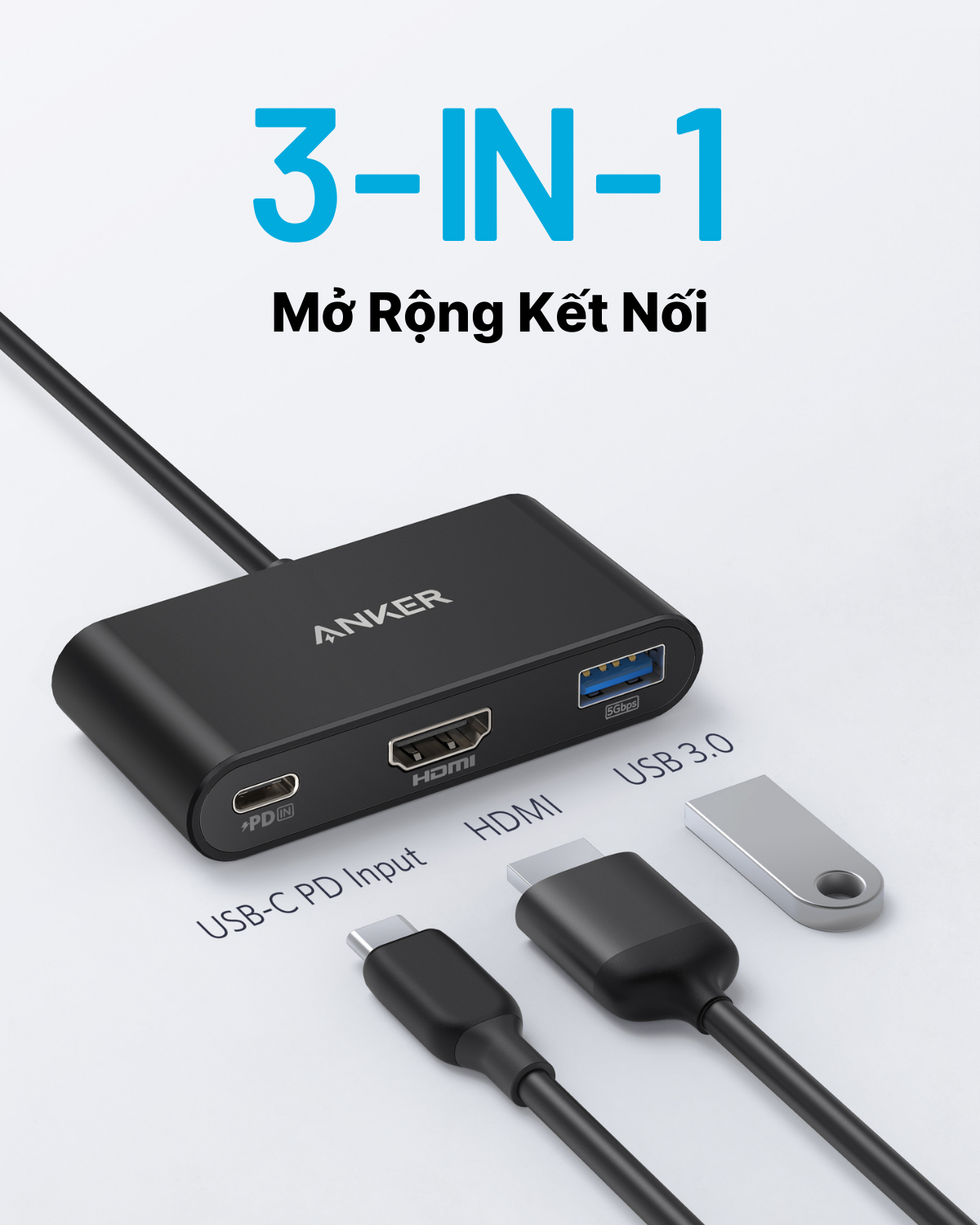 Hub chuyển đổi ANKER USB-C 3-in-1- Hỗ trợ PD 100W, HDMI 4K – A8339