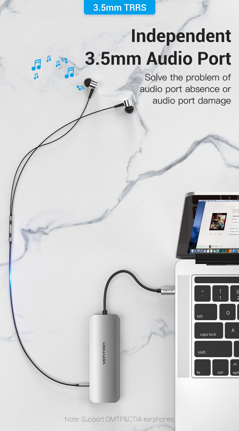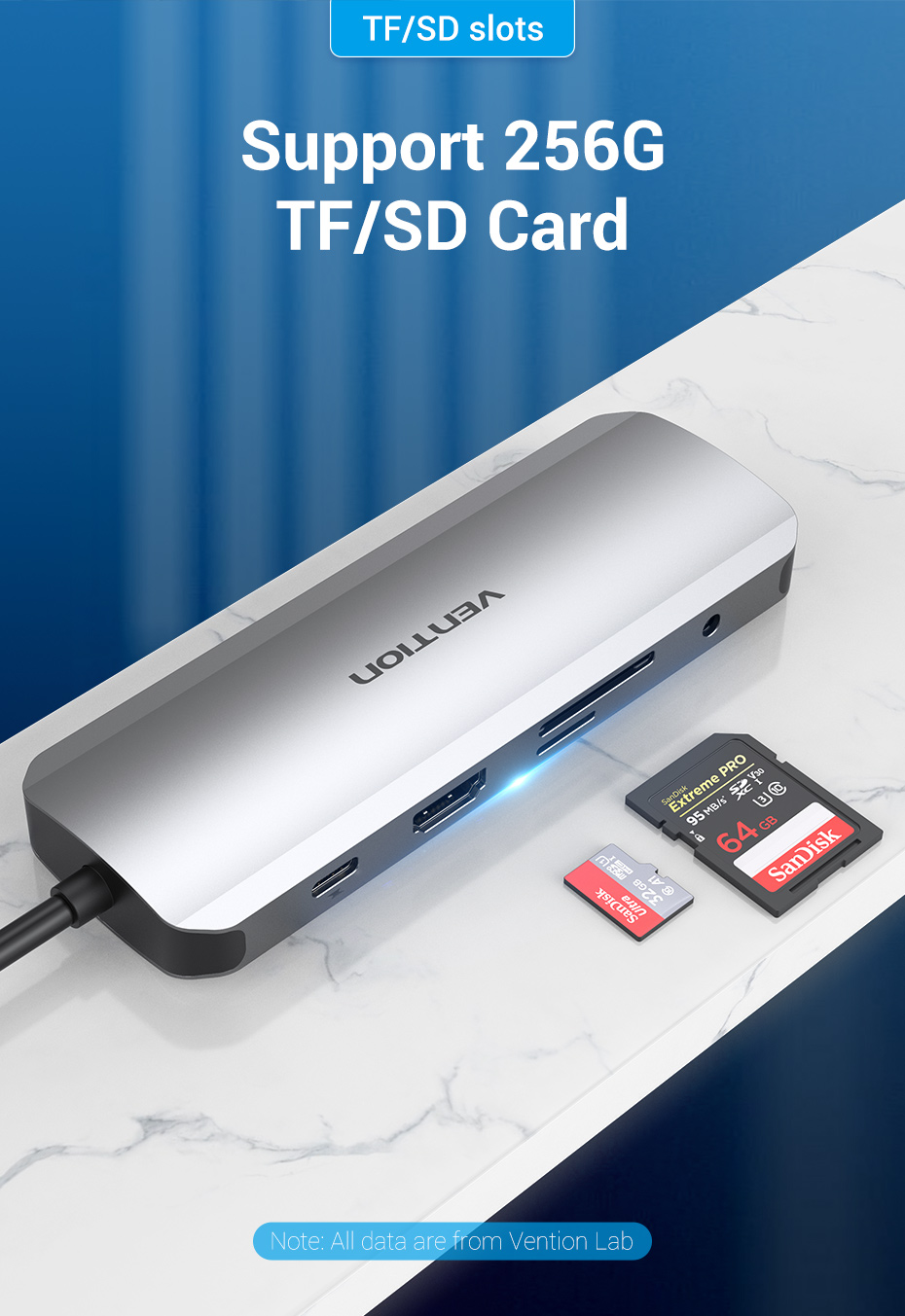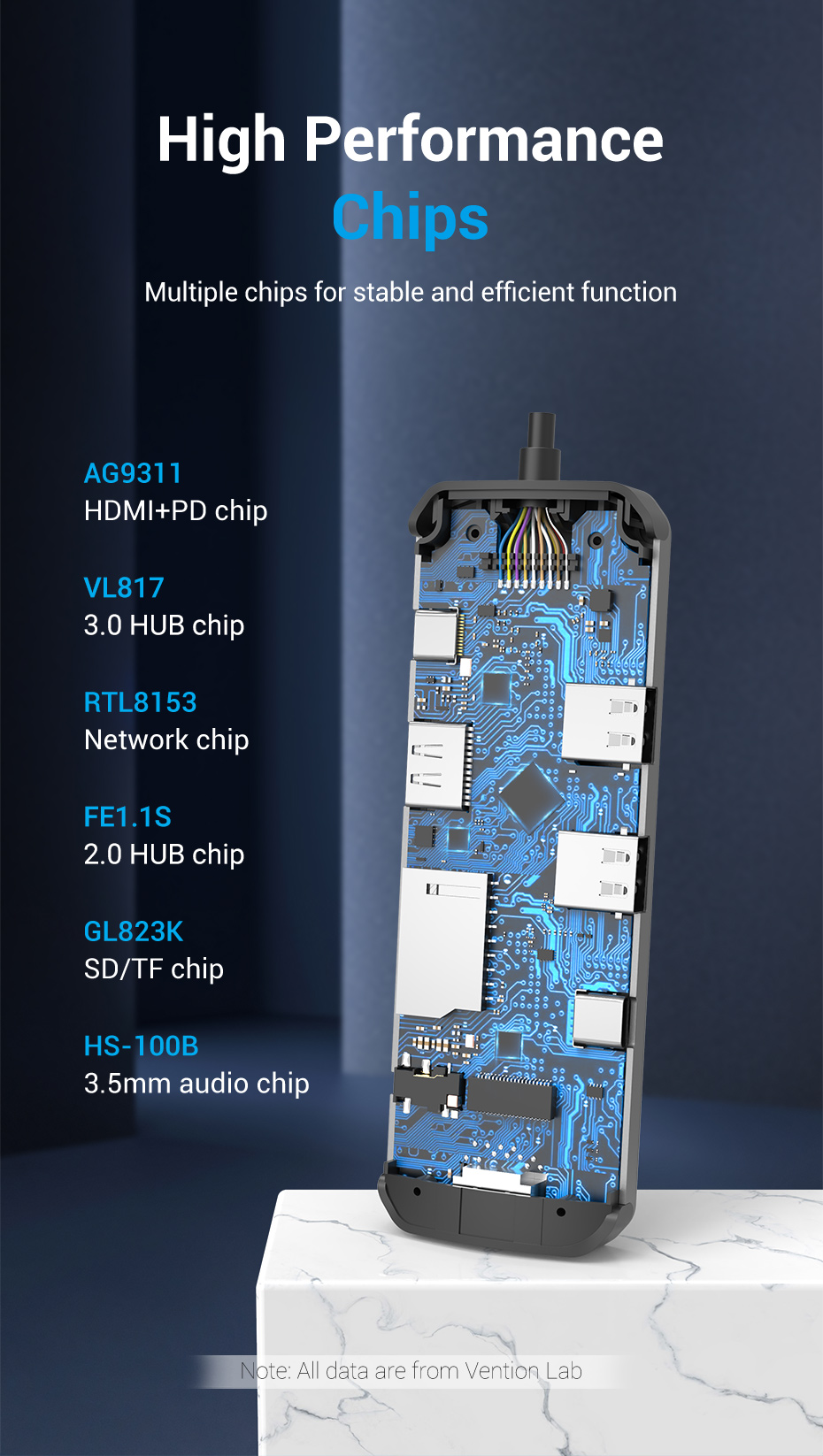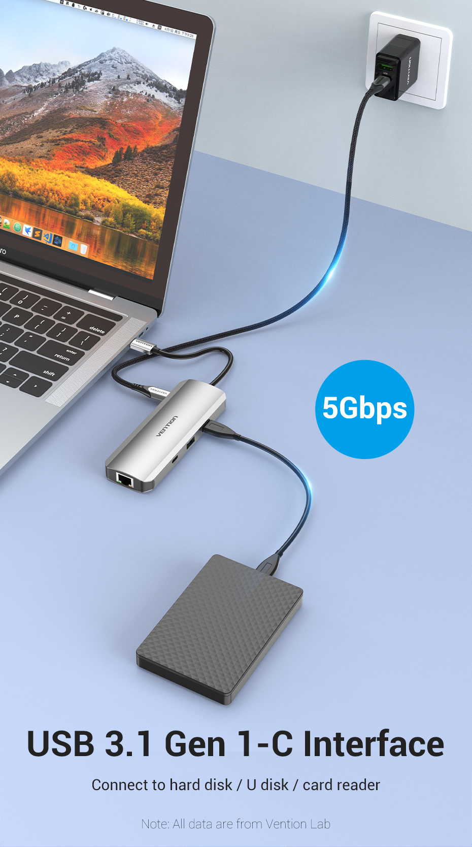Hub USB C Vention Bộ chuyển đổi PD 100W 9 trong 1 type C VENTION với 4K HDMI 3 USB 3.0 Gigabit RJ45 Ethernet thích hợp cho Hub Huawei Matebook/Dell/Samsung