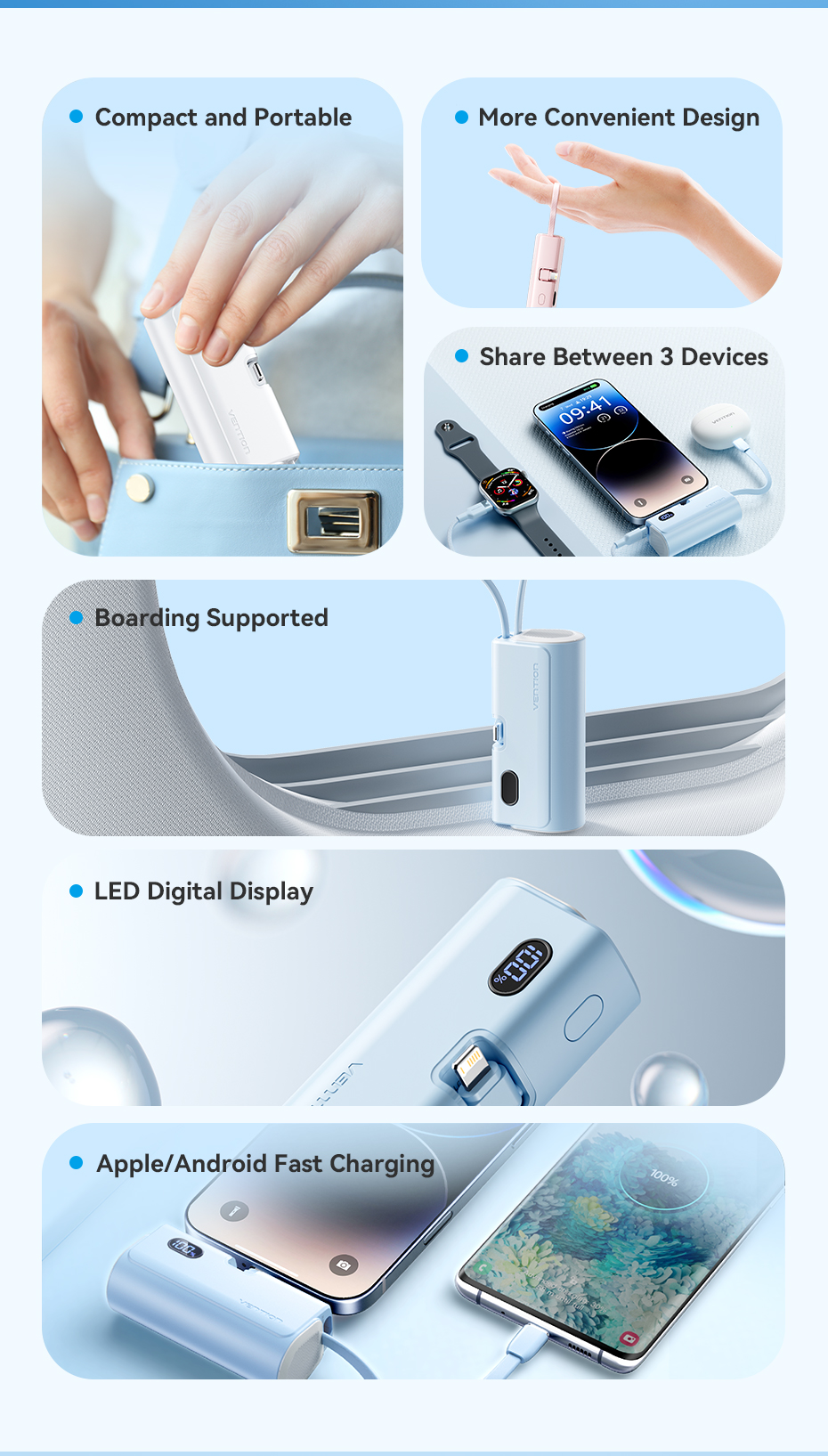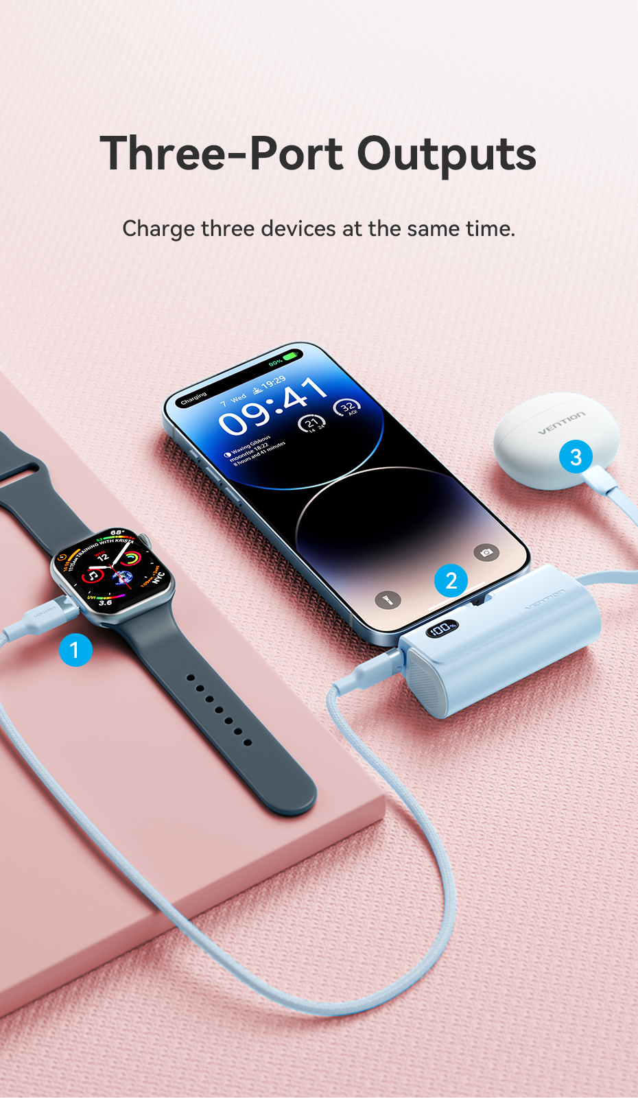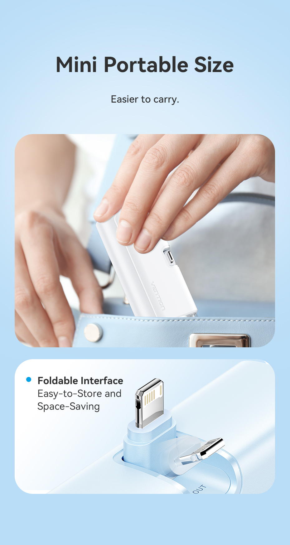 Màn hình LED Vention 4800mAh Ngân hàng điện Loại Lightning có thể gập lại 22,5W cho Ip 16 điện thoại / đồng hồ / tai nghe