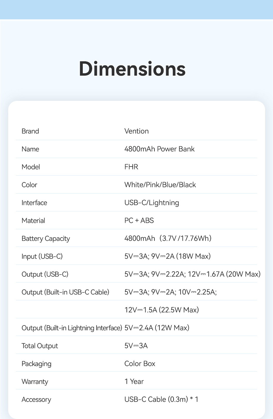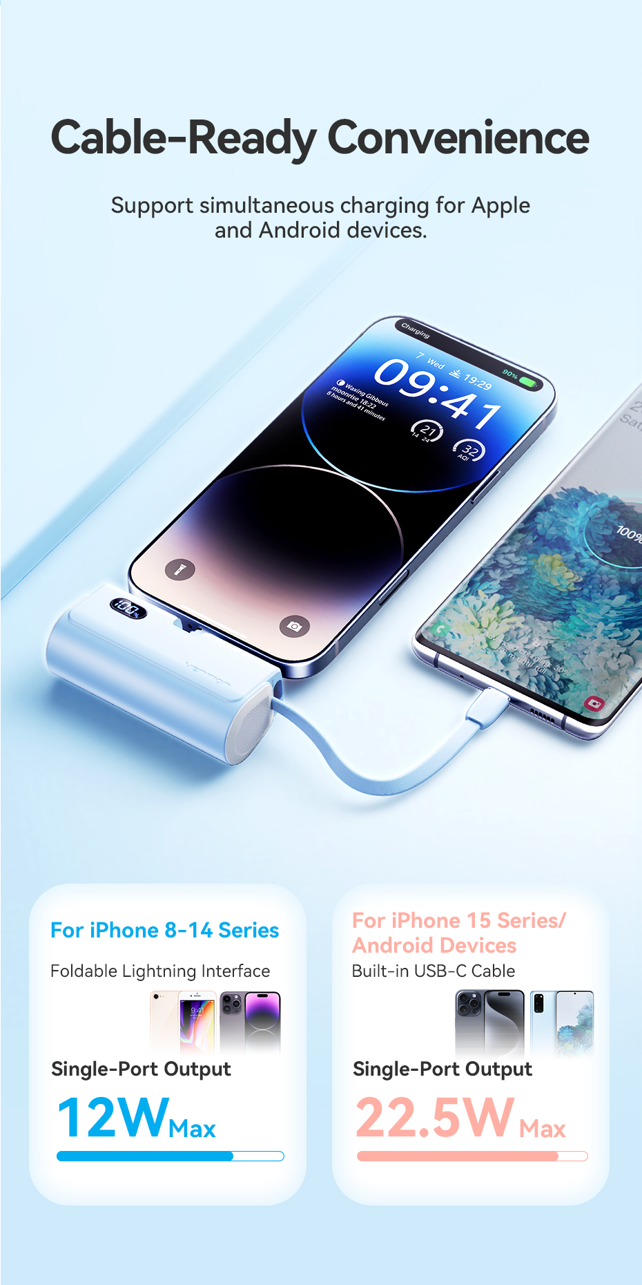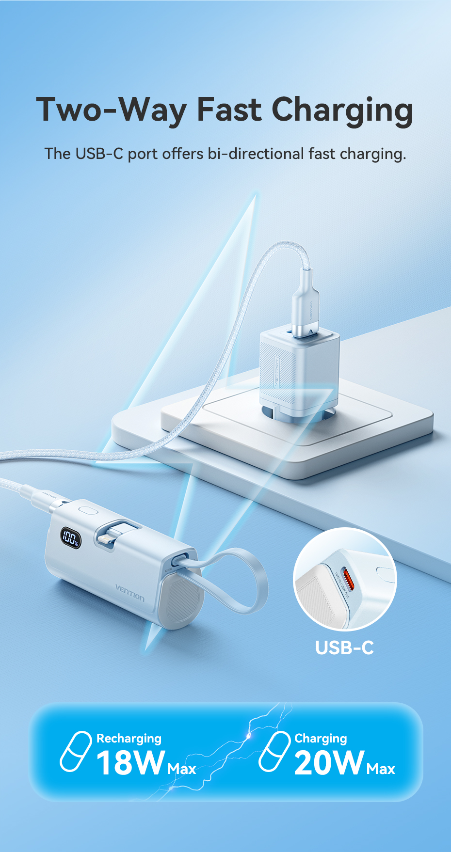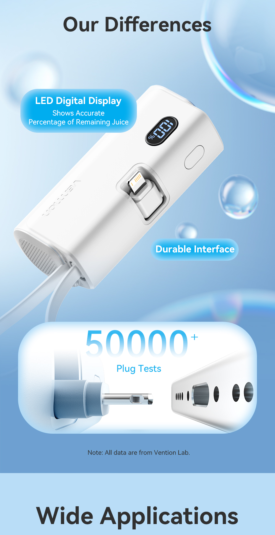 Màn hình LED Vention 4800mAh Ngân hàng điện Loại Lightning có thể gập lại 22,5W cho Ip 16 điện thoại / đồng hồ / tai nghe