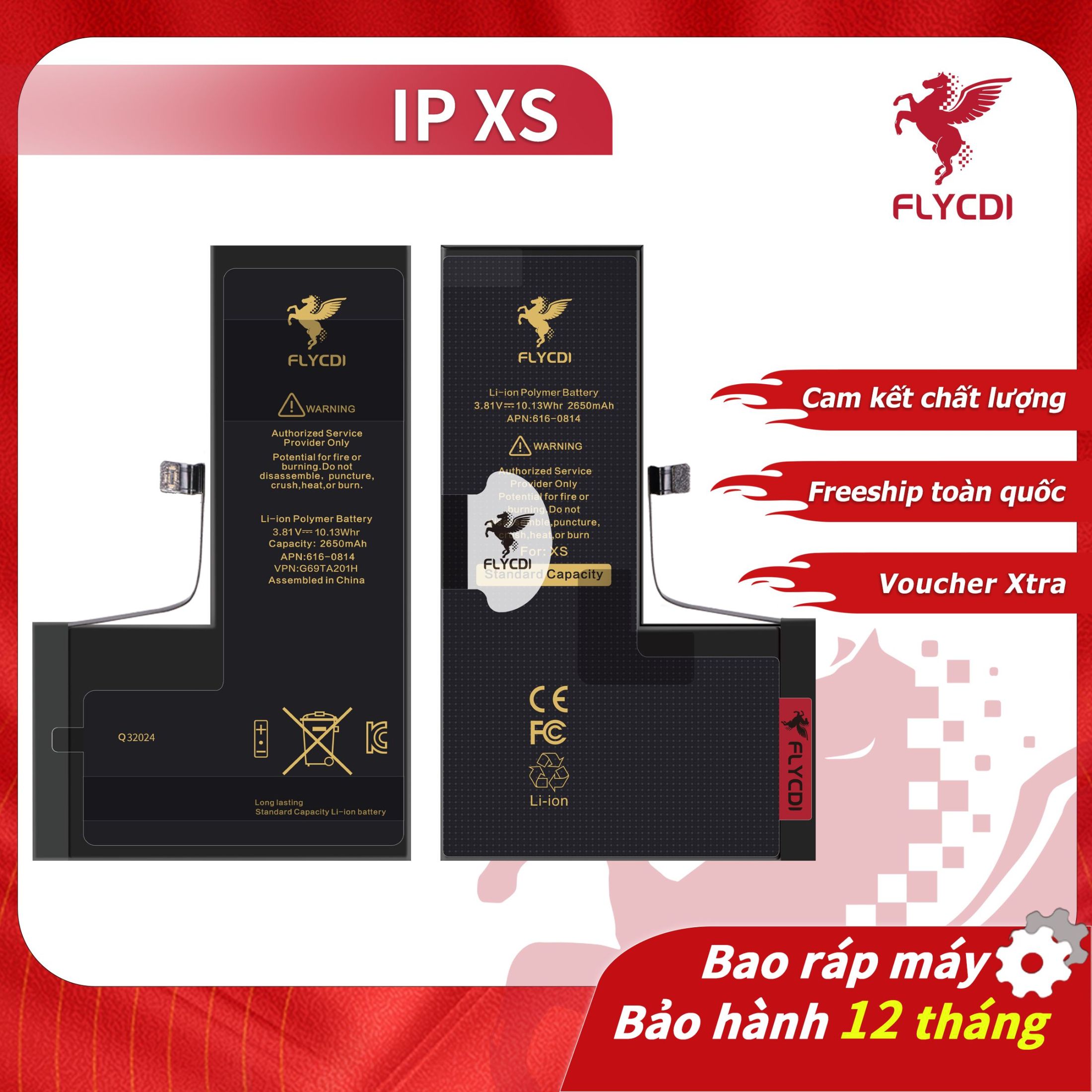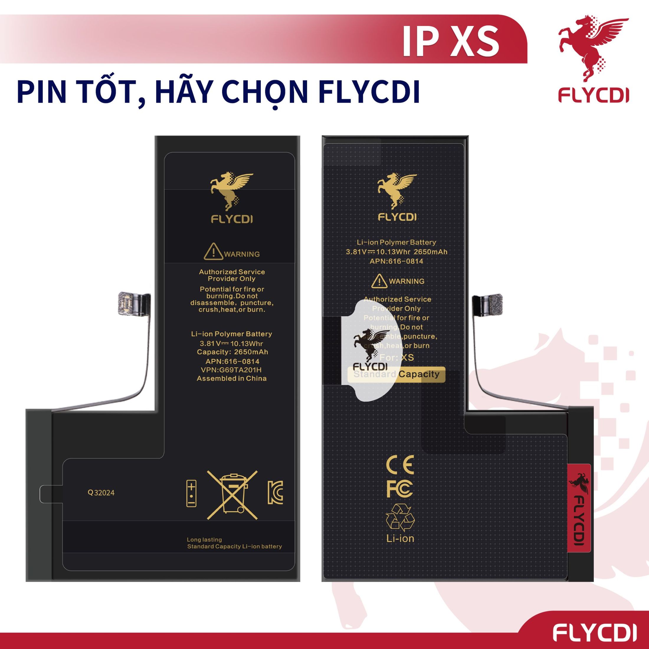 – Tên sản phẩm: Pin điện thoại dung lượng tiêu chuẩn cho dòng X/XSM/11/12/13/14 FLYCDI