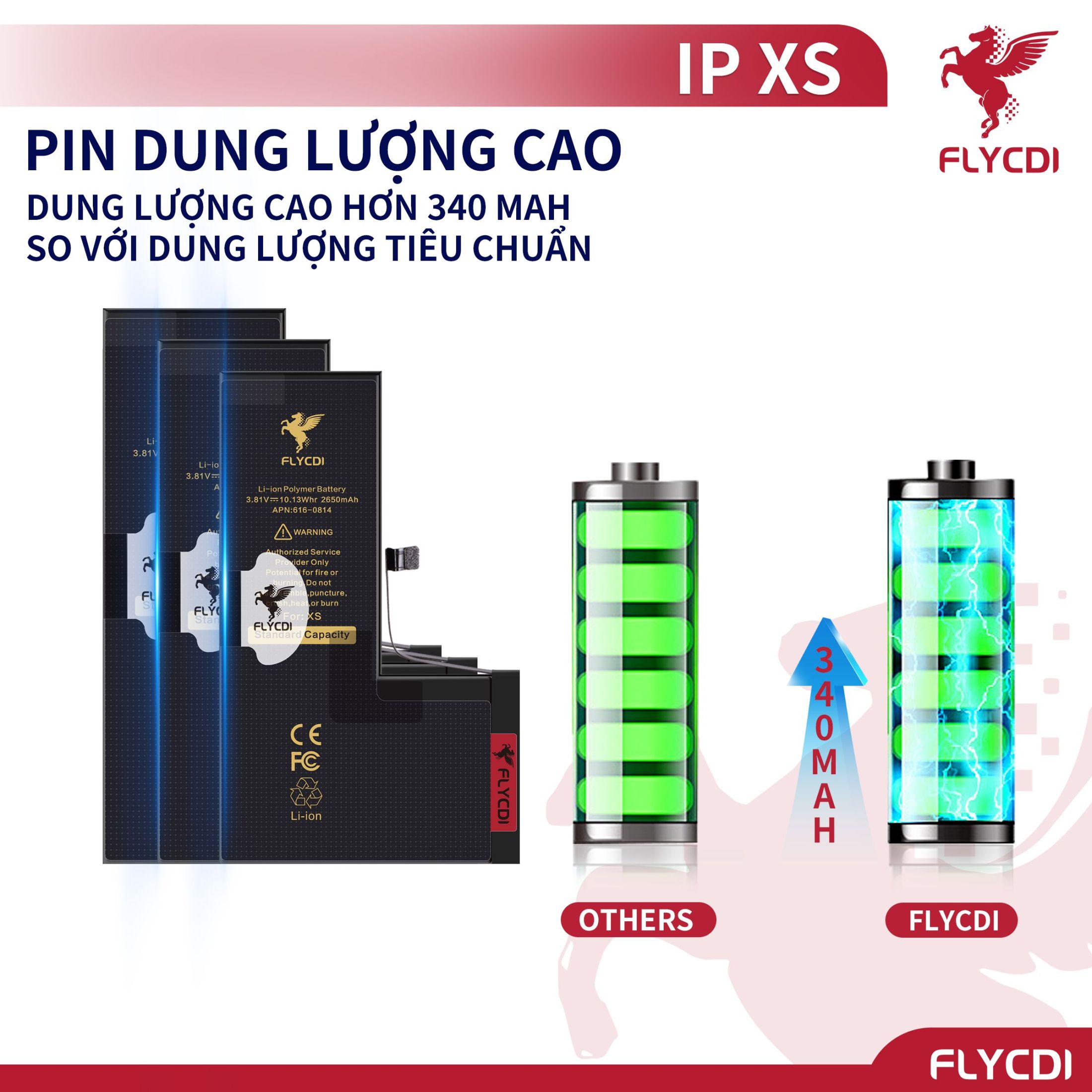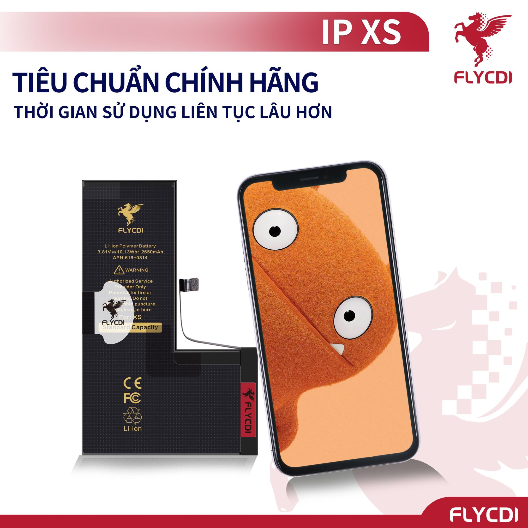 – Sản phẩm bao gồm: 1 Pin điện thoại dung lượng tiêu chuẩn cho dòng X/XSM/11/12/13/14 FLYCDI