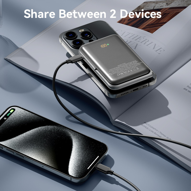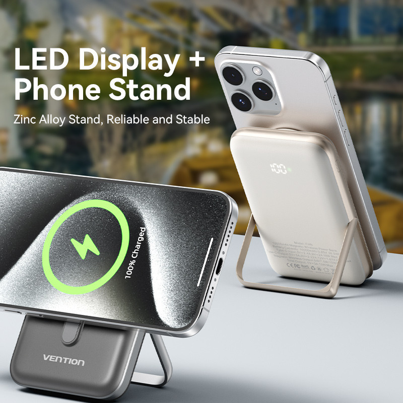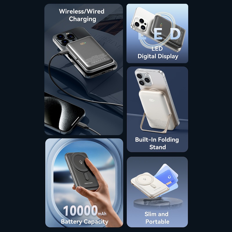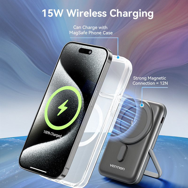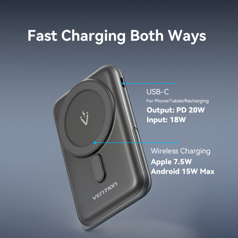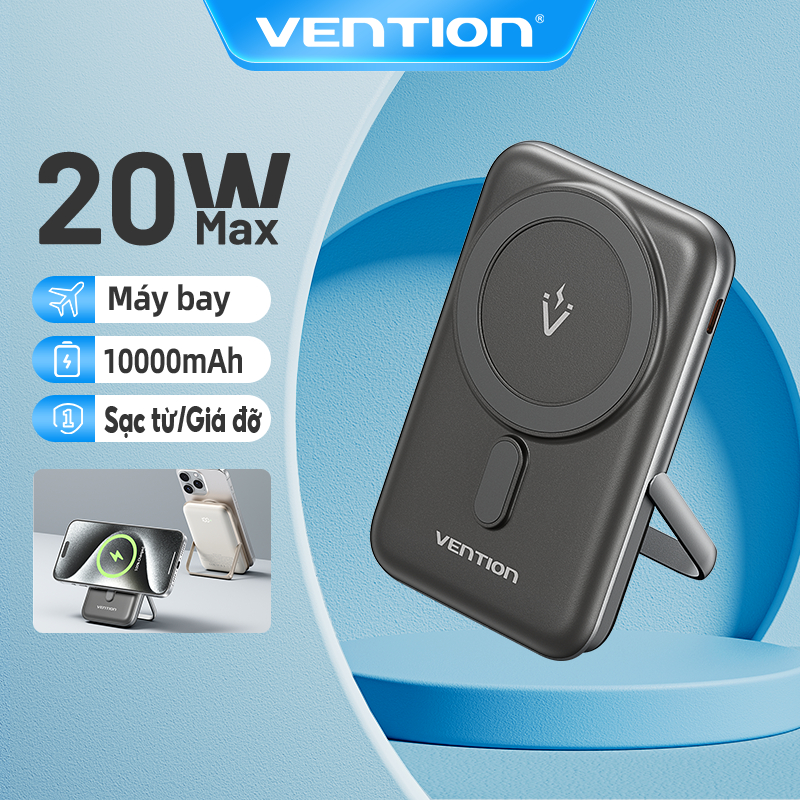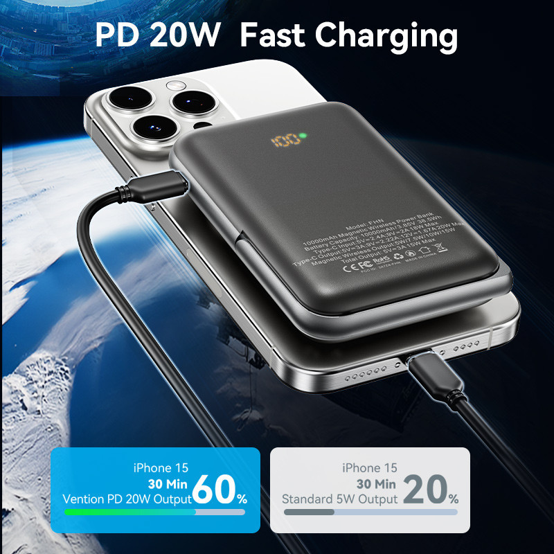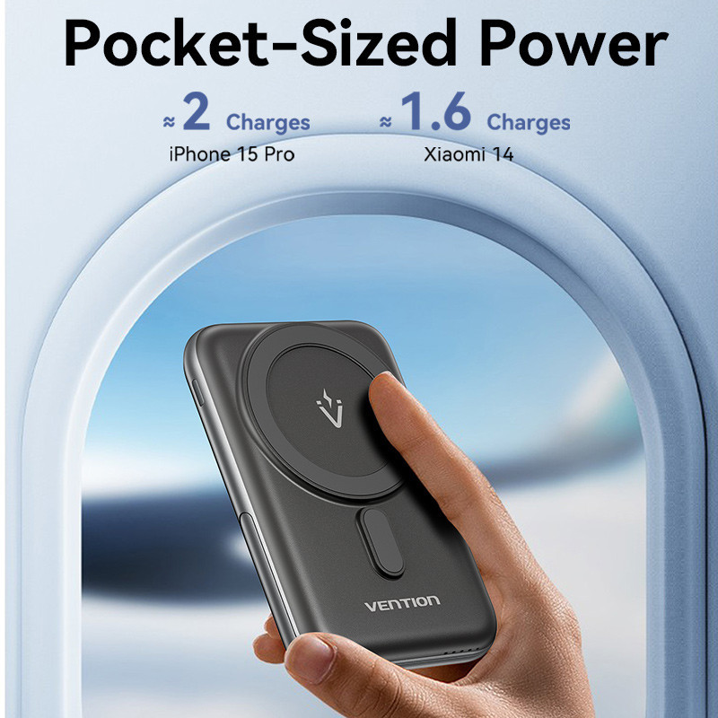 Sạc dự phòng nam châm Vention 10000mAh PowerBank Sạc dự phòng không dây từ tính Lightning USB-C USB-A cho Iphone 15 16 Pro Max điện thoại
