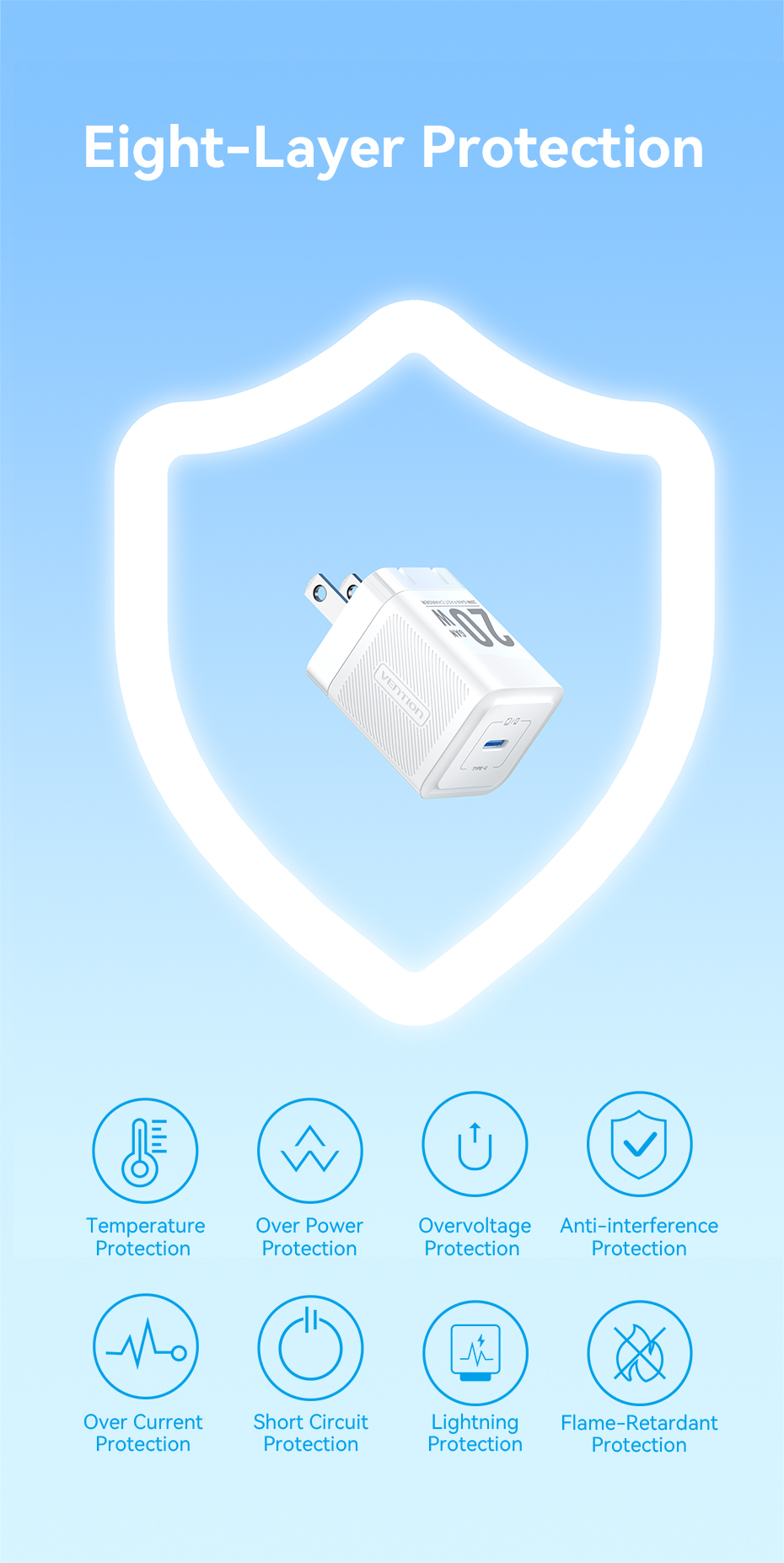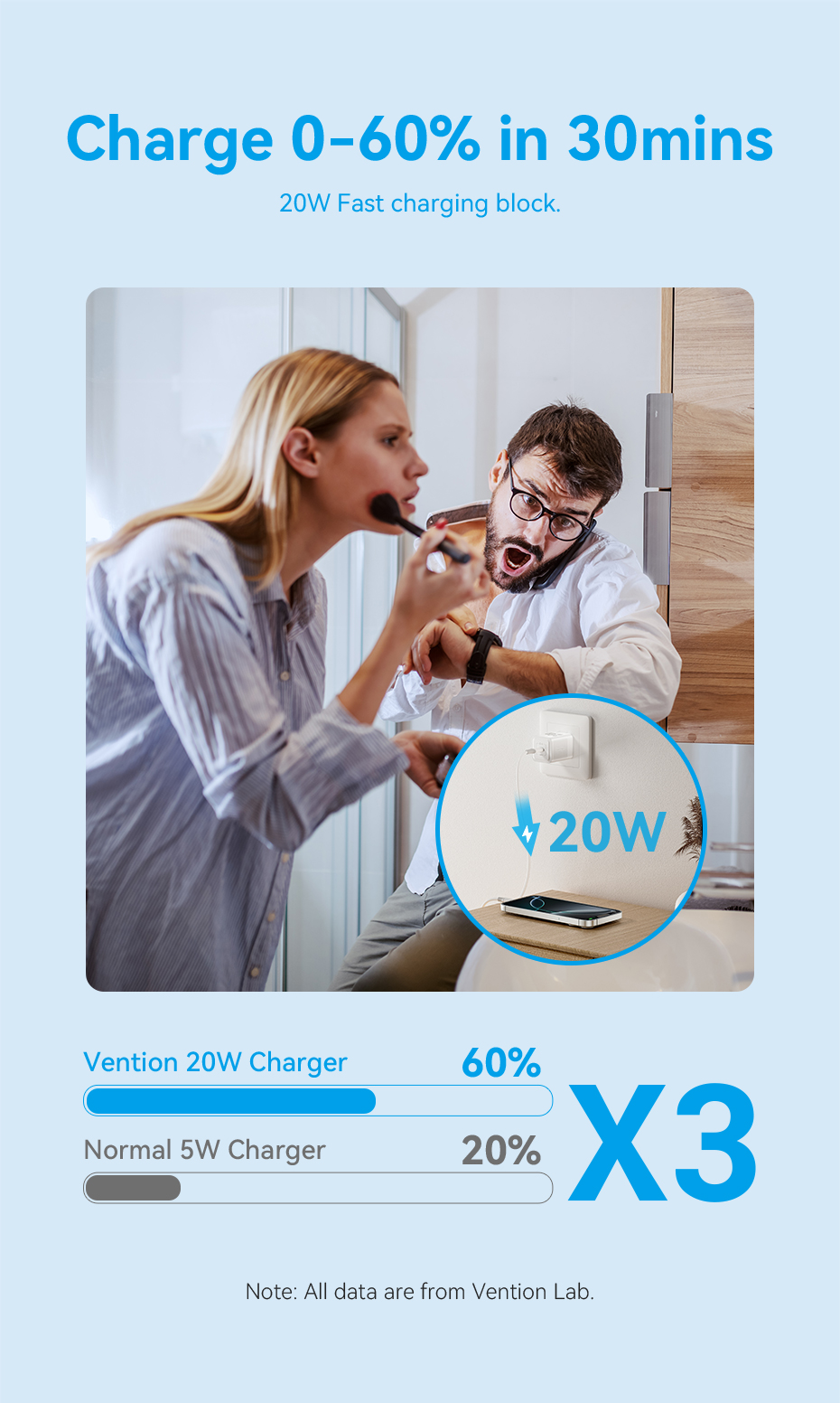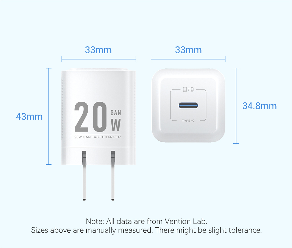 Vention 20W GaN USB C Sạc Nhanh PD 3,0 Sạc Tường Cắm QC 3,0 Bộ sạc Tương Thích Cho iPhone 16 Pro Max, Galaxy, Pixel 4 / 3, iPad Mini / Pro