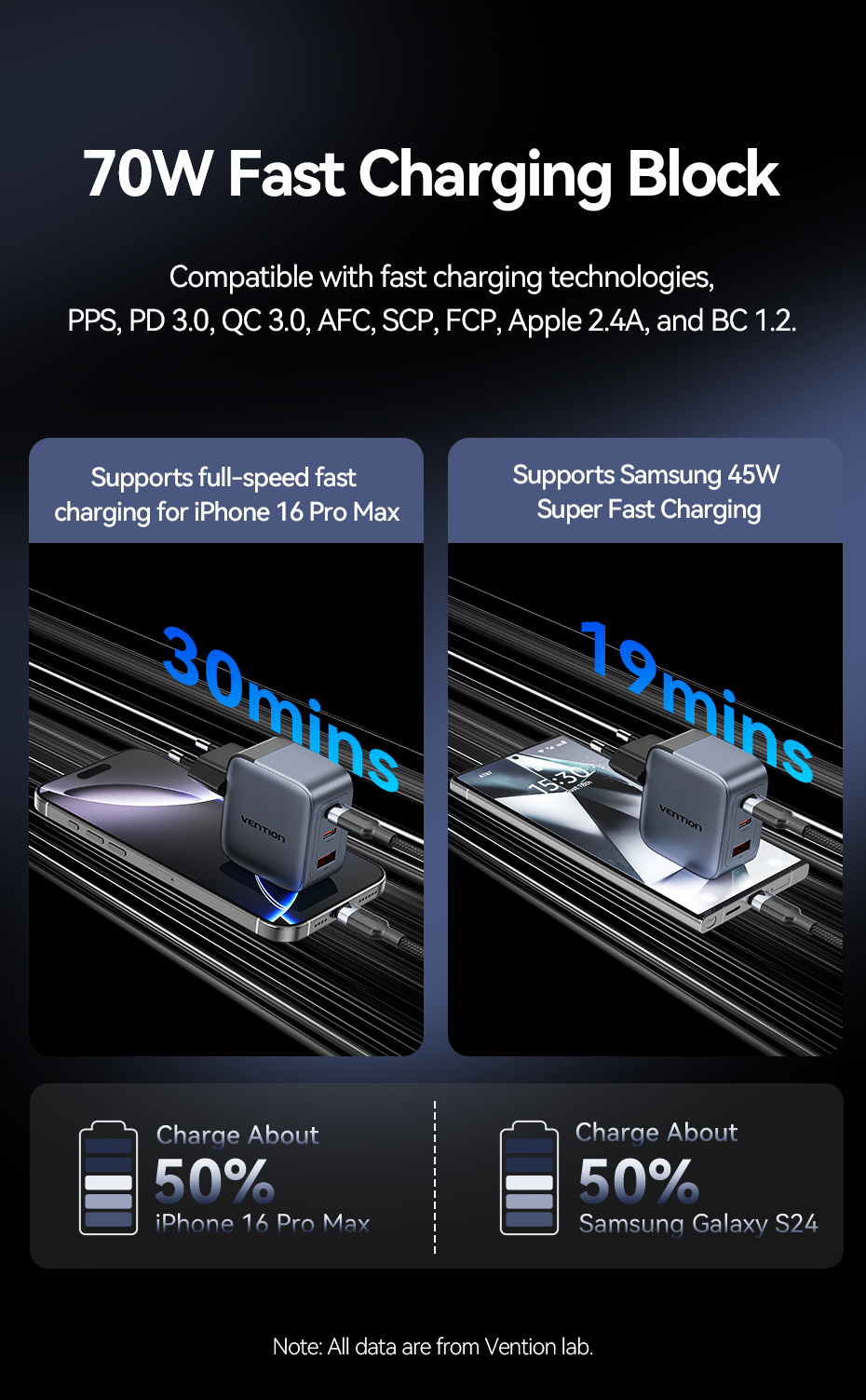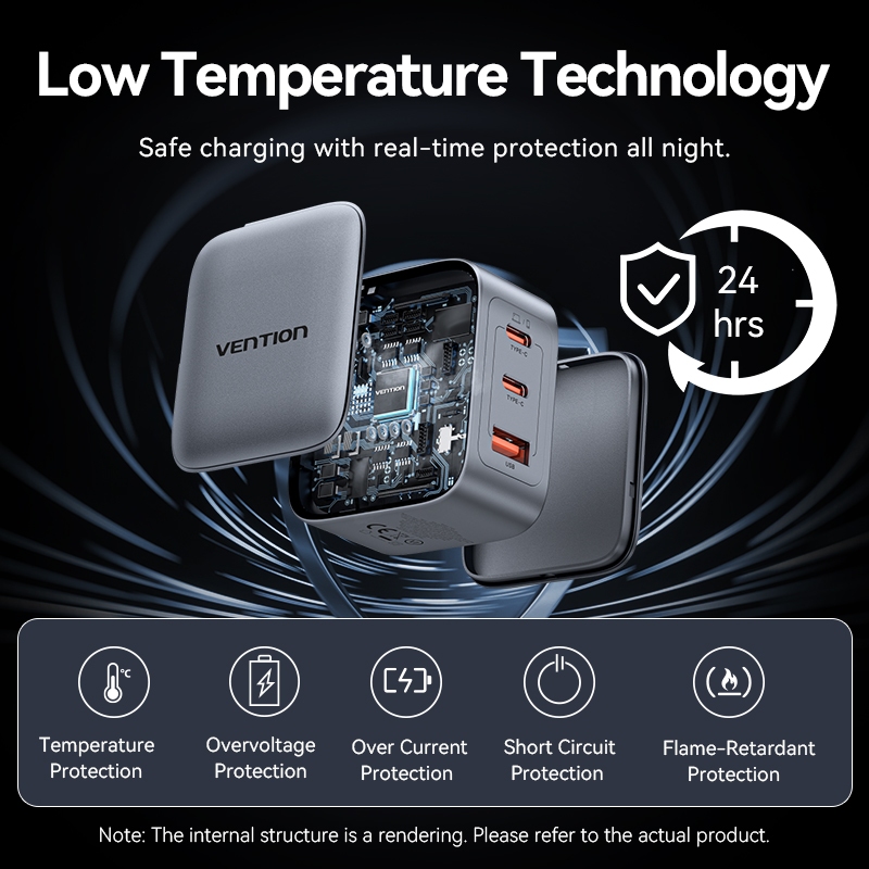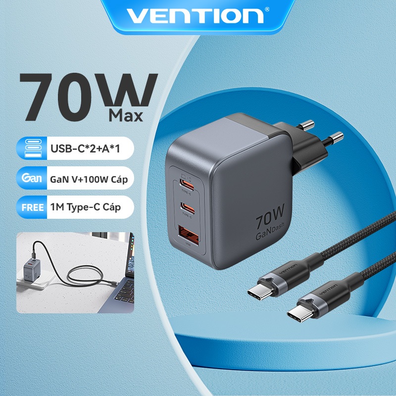 Vention 70W GaN Bộ sạc USB C PD + USB 3 cổng Bộ sạc chuyển đổi với QC4.0 PD USB typec Sạc nhanh US Cắm sạc cho Samsung Android sạc tường 30W 20W 65W