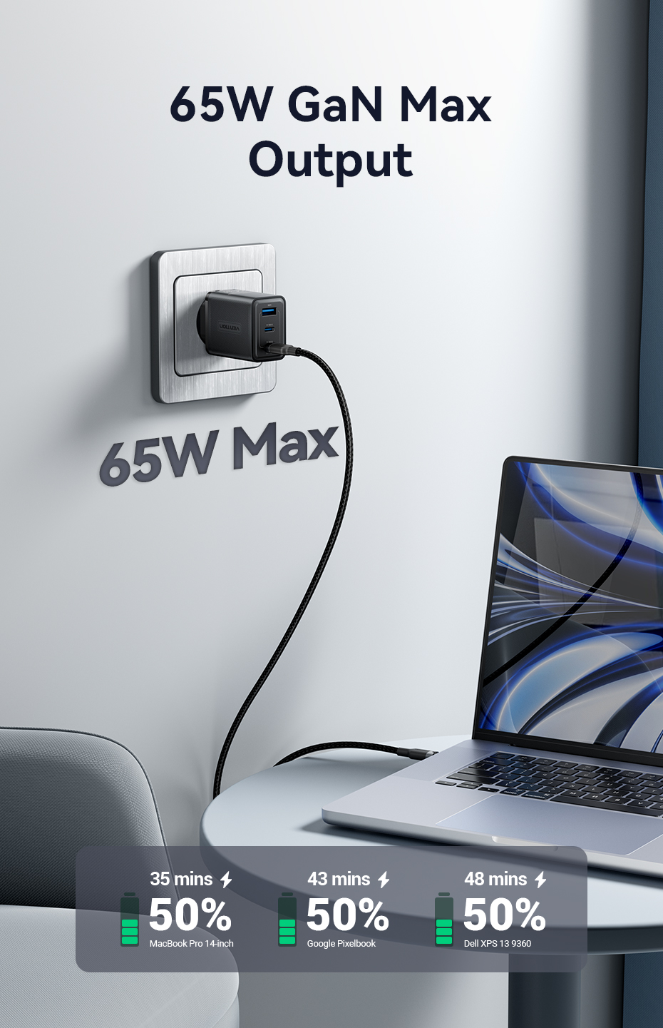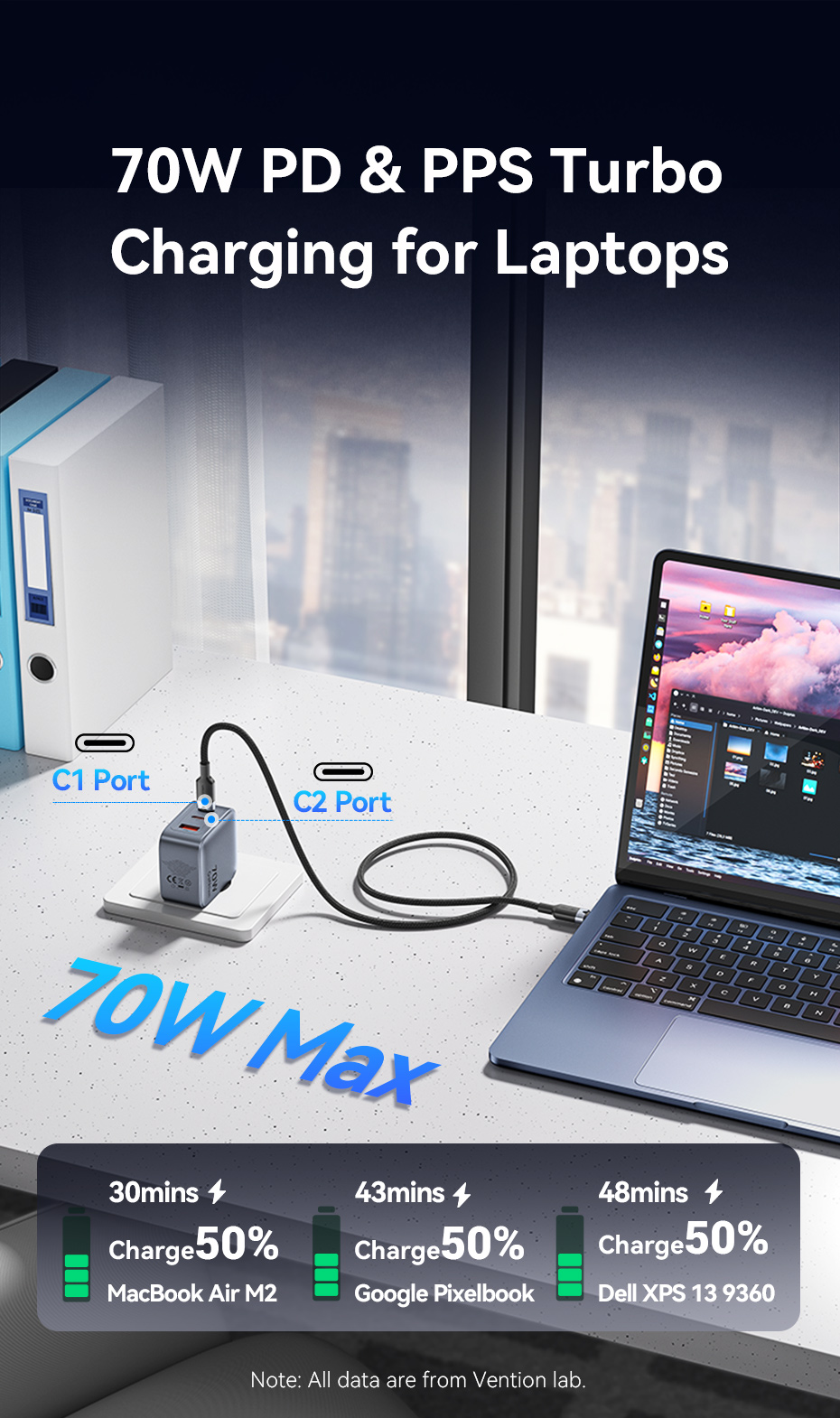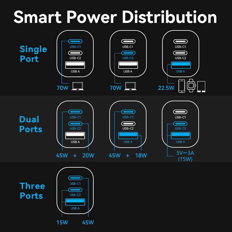 Đầu ra (USB-C1/USB-C2): 5.0V⎓3.0A (15.0W); 9.0V⎓3.0A (27.0W); 12.0V⎓3.0A (36.0W); 15.0V⎓3.0A (45.0W); 20.0V⎓3.5A (70.0W)