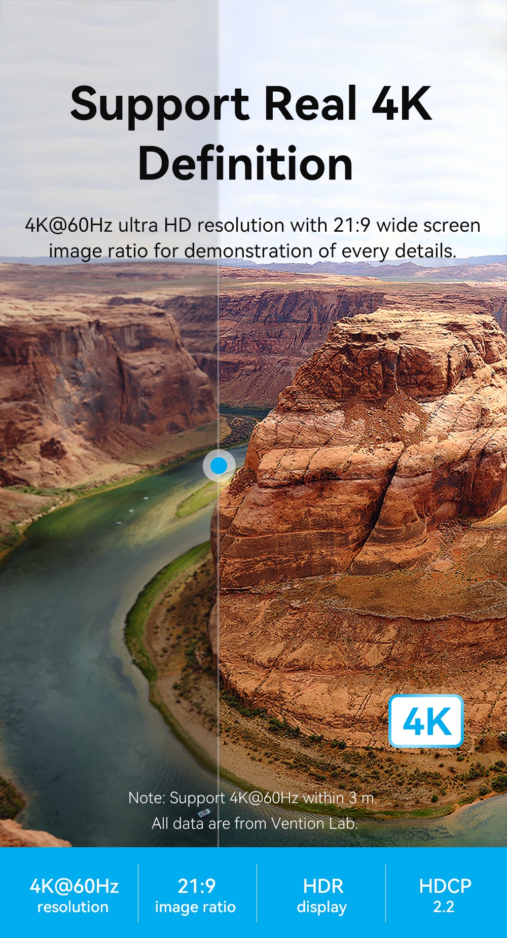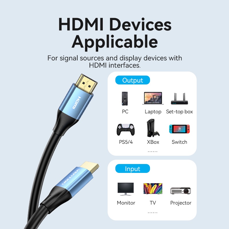 Vention Cáp HDMI 4K 60Hz UHD Hỗ Trợ HDCP 2,2 Cho PC PS5 / 4 XBox