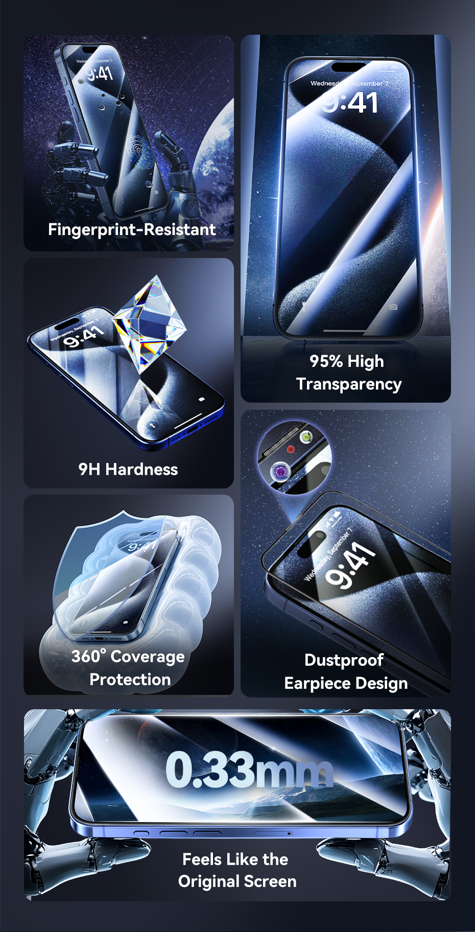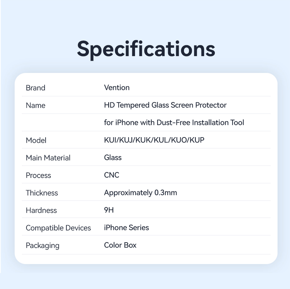 Vention iPhone Bảo Vệ Màn Hình Cho iPone 13 / 14 / 15 / 16 Pro Max Plus HD Kính Cường Lực Với Công Cụ Lắp Đặt Không Bụi