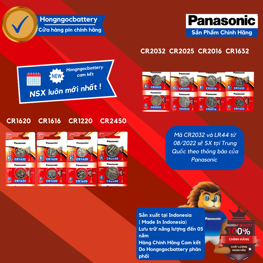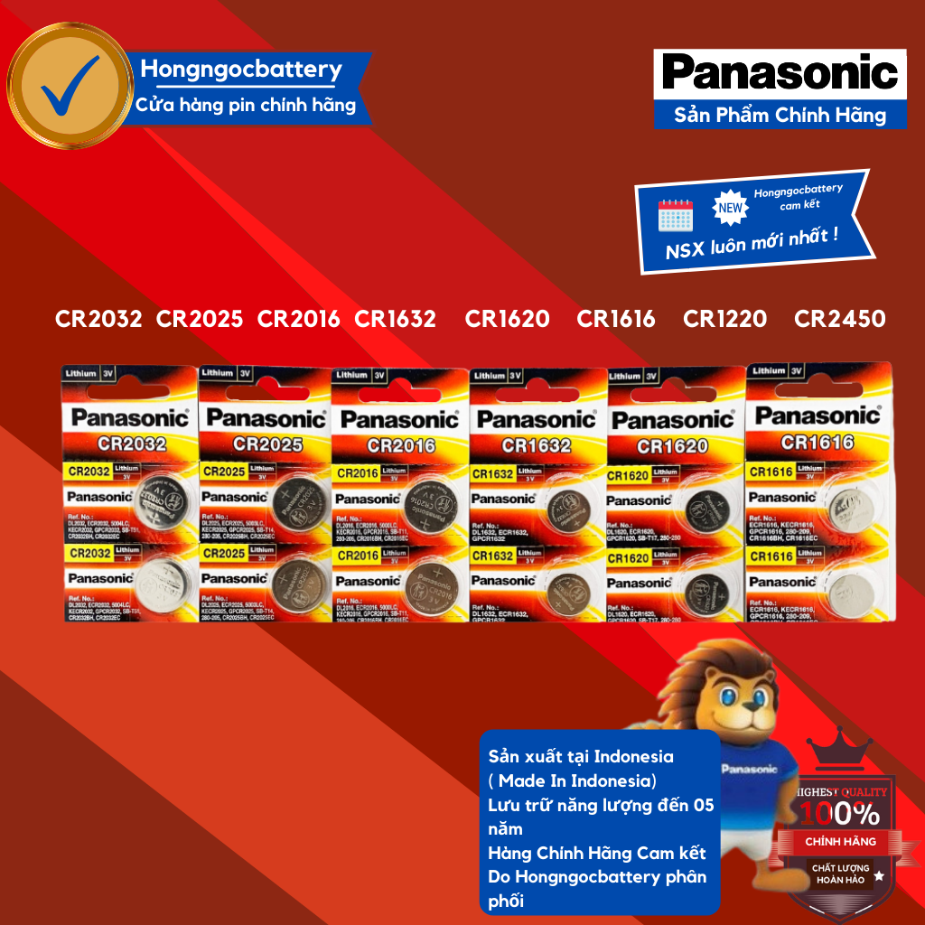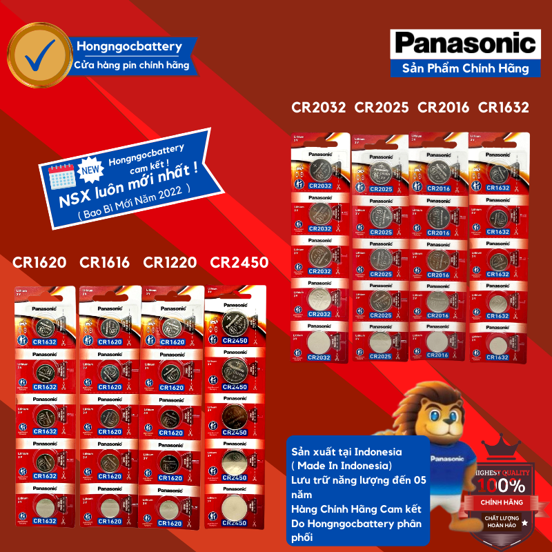 Vỉ 2 Viên Pin Panasonic CR2032 / CR2025 /CR2016 / CR1632 / CR1620 / CR1616 / CR1220 / CR1216 / CR2450 / CR2430 / LR44 – Hàng chính hãng